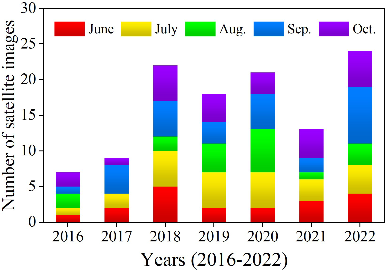 Number of Landsat OLI and Sentinel-2 MSI images used in each month.