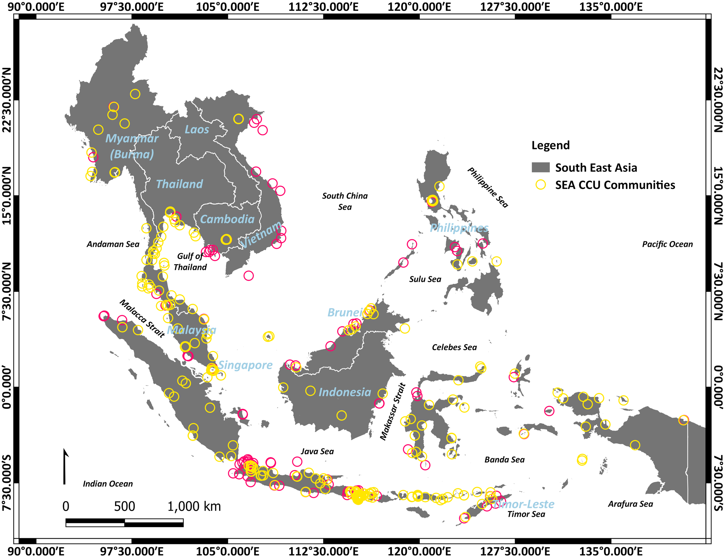Hotspots of CCUs and marine debris communities in SEA.