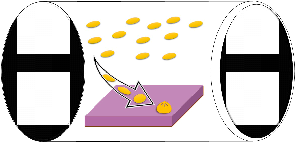 Diagram of the settlement chamber design used in this study (see also Kuffner et al., 2006 and Ritson-Williams et al., 2020) with settlement tile and larvae placed inside. The arrow demonstrates progression of swimming larvae through to settlement and metamorphosis on the substrate tile. Chamber made from PVC plastic tubing capped with mesh at either end (100 or 180 µm). One mesh cap can be removed to insert larvae and settlement tile into the chamber.