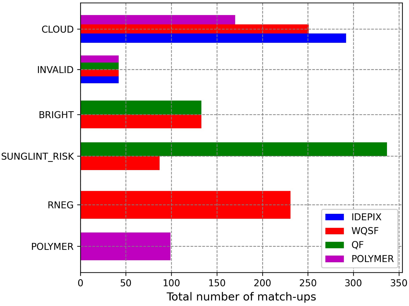 | POLYMER | Bitmask | land, cloud_base1, l1_invalid2, negative_bb, out_of_bounds6, exception, thick_aerosol6, high_air_mass6, external_mass, inconsistency6, anomaly_rwmod_blue6 |