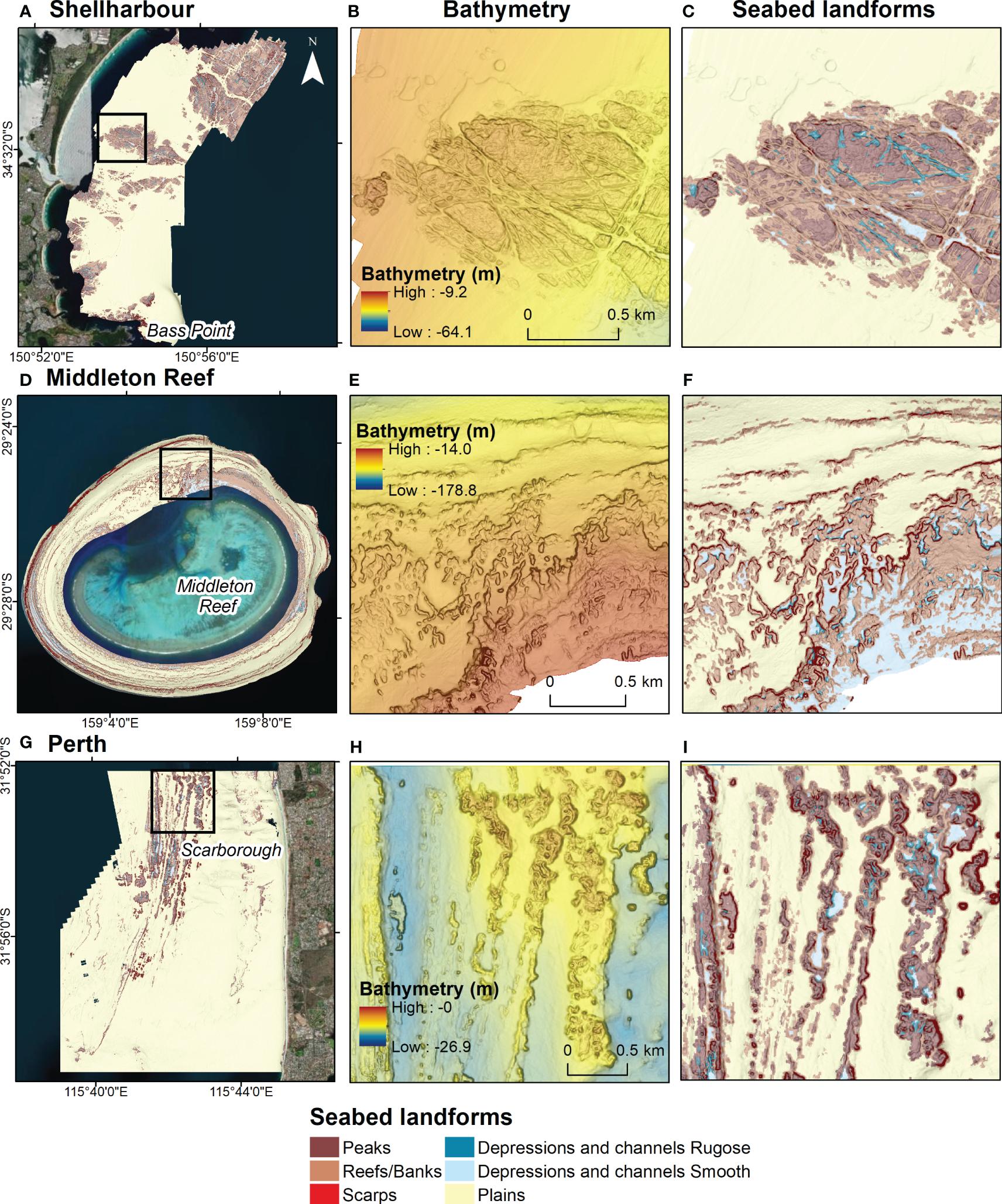 seabed classification, seafloor mapping, seabed features, geomorphometry, landforms, shelf reefs, bathymetry