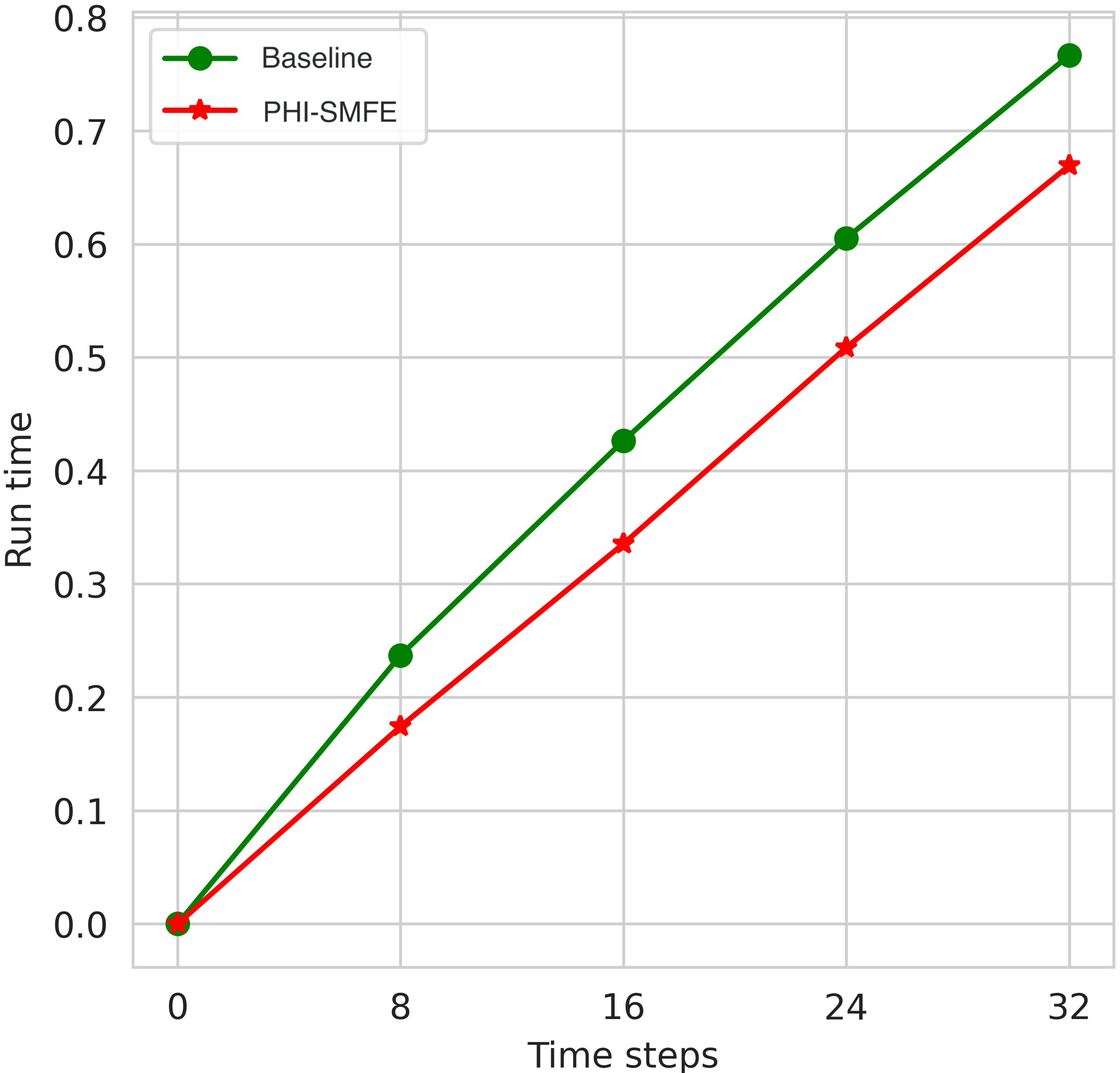 Furthermore, we conducted tests to evaluate the multi-time step inference speed of the proposed method and the SOTA model. Figure 4 illustrates the results, indicating that the baseline method requires a total running time of 0.7665s for multi-time step inference, while the proposed PHI-SMFE achieves a total running time of 0.6693s. This represents a notable reduction of 12.7% in running time compared to the baseline method. Considering that the model requires re-invoking the solver for inference at each time step, we believe that evaluating inference performance in the multi-sample case can provide a better indication of the accelerated computing power of the proposed model. This concept aligns with the findings observed in the single-step inference test described earlier. The superior acceleration performance of our proposed model compared to the baseline can be attributed to several factors. Firstly, in the spatial discretization coefficient prediction component, PHI-SMFE reduces the depth of the original model by employing a single layer of multi-scale pyramid network and two layers of convolutional network to handle dynamic field features. This reduction in model depth leads to significantly smaller trained model parameters compared to the original model. Additionally, PHI-SMFE minimizes redundant processing in scale feature extraction, and the lateral connections in the network layers retain feature information from previous layers in a channel-biased manner. The weight quantization index further supports the enhanced computational acceleration of our proposed model. Specifically, the weight parameters of the original model amount to 7.93MB, whereas the trained model’s weight parameters are only 61.4kB in size.