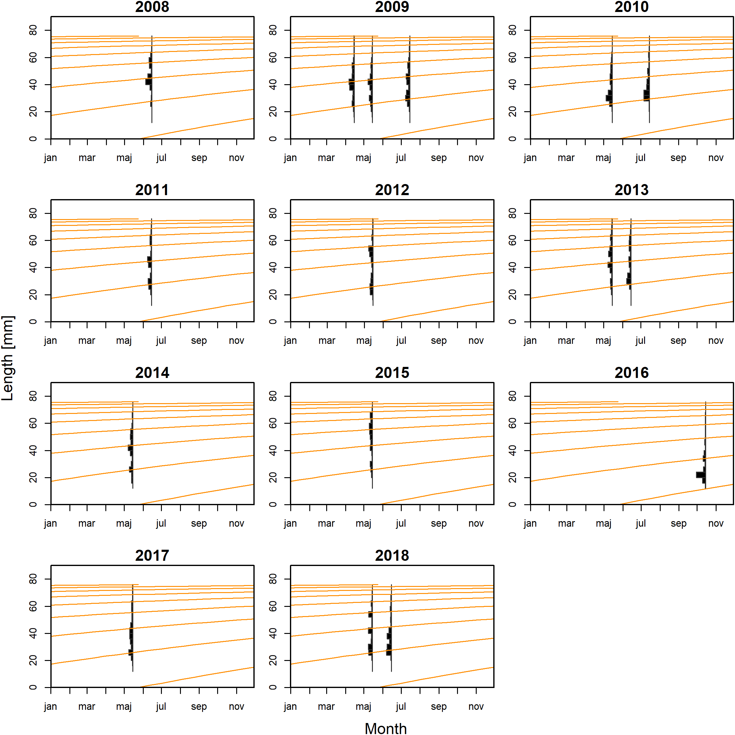 Taylor M. H. Mildenberger T. K. (2017). Extending electronic length frequency analysis in R. Fish Manag Ecol.24, 330–338. doi: 10.1111/fme.12232
