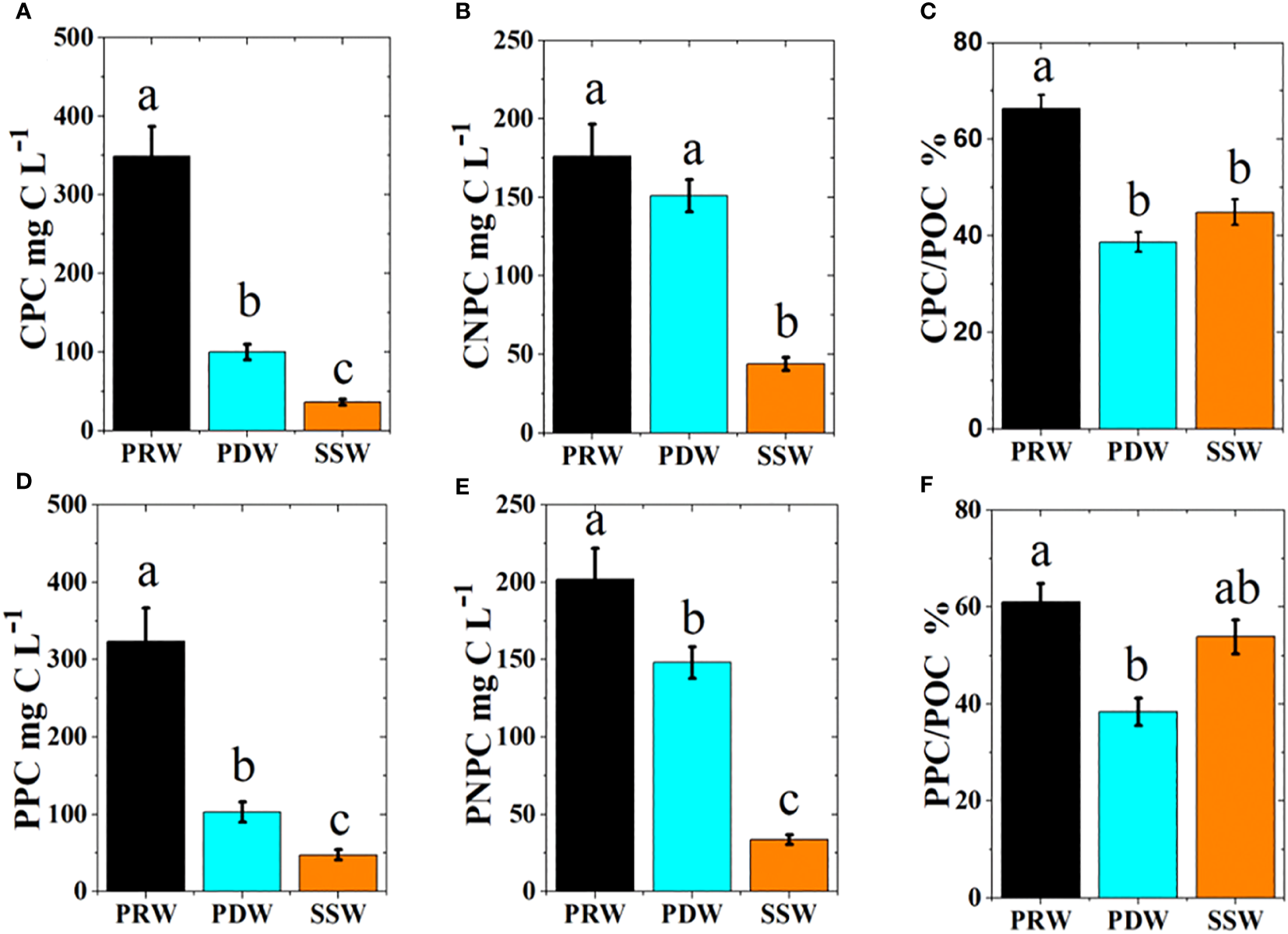 Among the water masses, the abundances of Syn and PEuk at PRW stations were significantly (p<0.01) higher than those at PDW and SSW stations, respectively, but no significant difference was observed between PDW and SSW stations (Figures 5C, D).