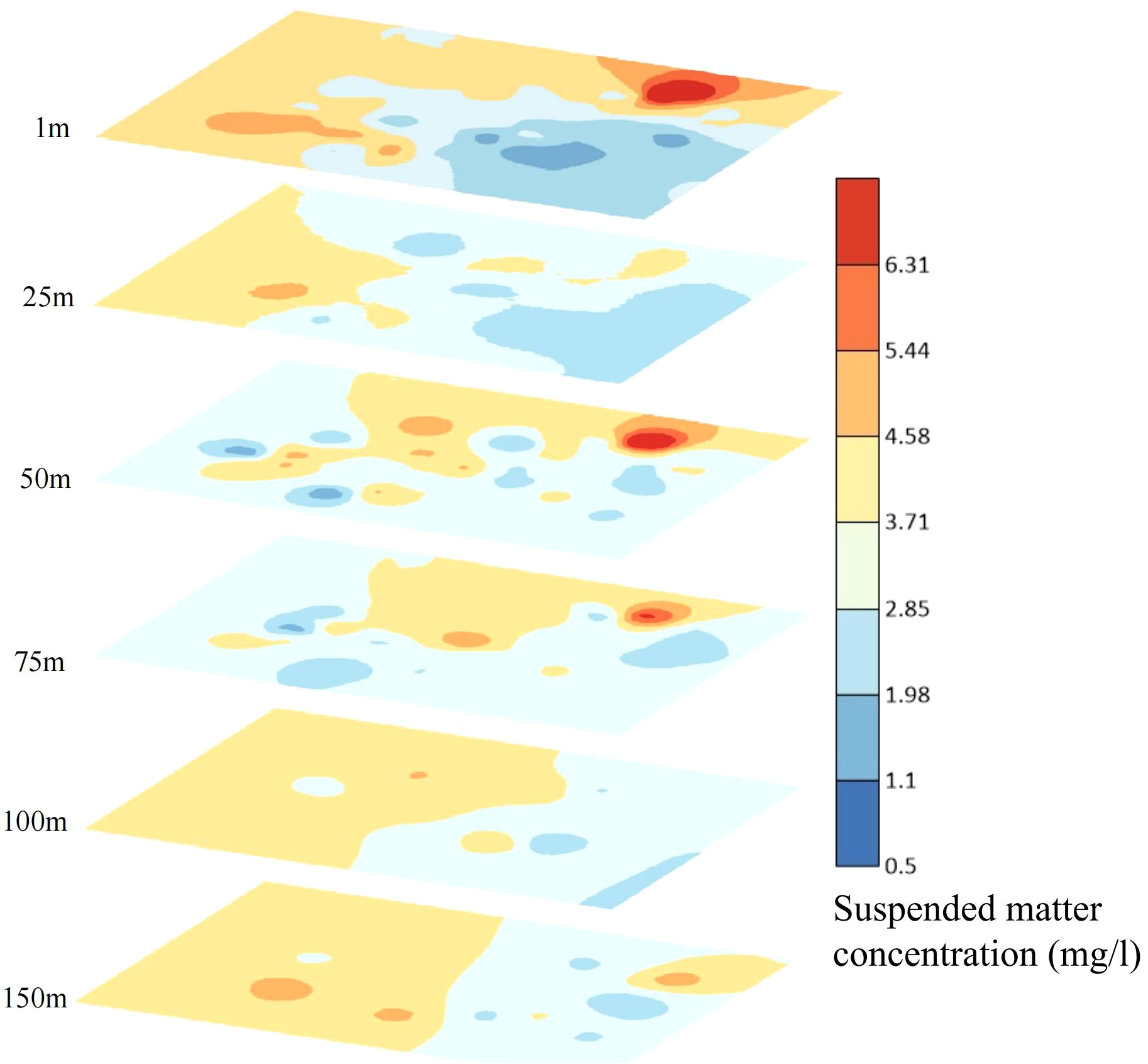 During the transition of spring-summer monsoon (May 2019), the direction of the surface currents in the ZGA was generally easterly (Liu, 2010), with currents in the north flowing eastwards and currents in the south flowing southeastwards (Guohong et al., 2005; Jilan, 2004; Su, 2004). This may be one of the primary controlling factors for the higher SMC observed in northwest (3.86 mgL-1) than the southeast (3.12 mgL-1) of the study area.