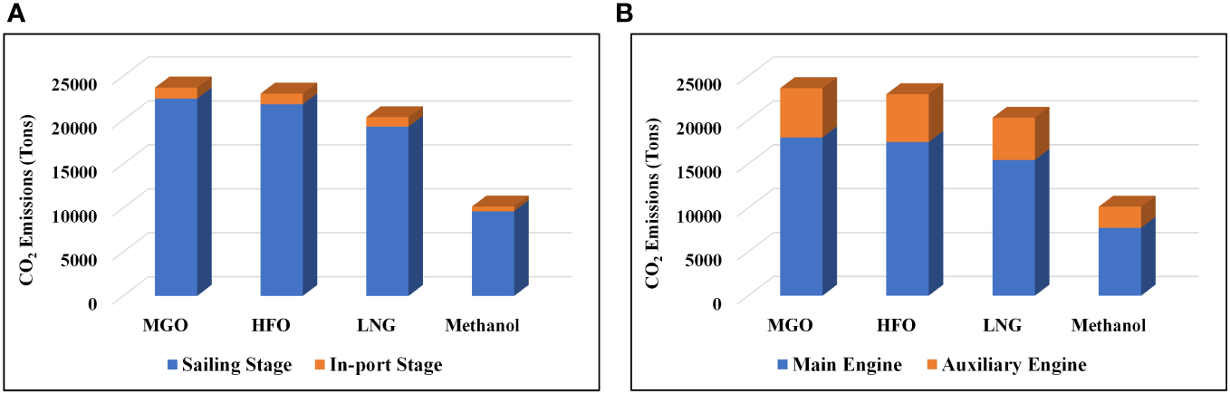 To tackle global warming and achieve the 1.5°C goal of the Paris Agreement, there’s an increasing urgency to reduce greenhouse gas (GHG) emissions, especially carbon dioxide (CO2). Life cycle assessment (LCA) is a valuable method for calculating CO2 emissions, with a primary focus on the carbon footprint (CF) of products (Aseel et al., 2021; Fan et al., 2023). It is required to cover CO2 emissions from all stages in a product’ s lifecycle, such as production, transport, storage and use. Among them, transport is an important stage. Maritime transport, responsible for around 90% of global transport volume (Trivyza et al., 2019; Yu et al., 2021), is the most vital mode of transport in international trade and the most cost-effective way to transport large quantities of cargo over long distances (Du et al., 2019; Yan et al., 2020; Fan et al., 2022b). However, it generates approximately 3% of global GHG emissions (Wang et al., 2022; Mukherjee et al., 2023). Therefore, GHG emissions from maritime transport, particularly CO2 emissions, should be calculated accurately.