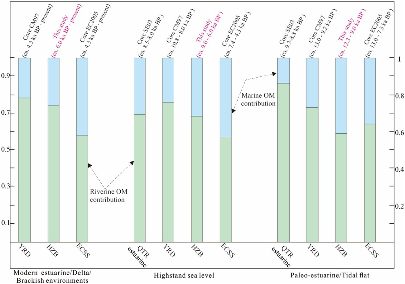 Table 2 The Holocene OM contribution from riverine and marine OM contributions in the ECSS sedimentary system.
