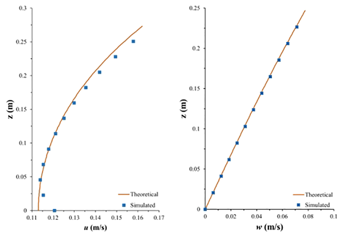 The vertical flow rate of the water quality point at the bottom boundary should meet equation , and the horizontal flow rate should meet as Equation 14.
