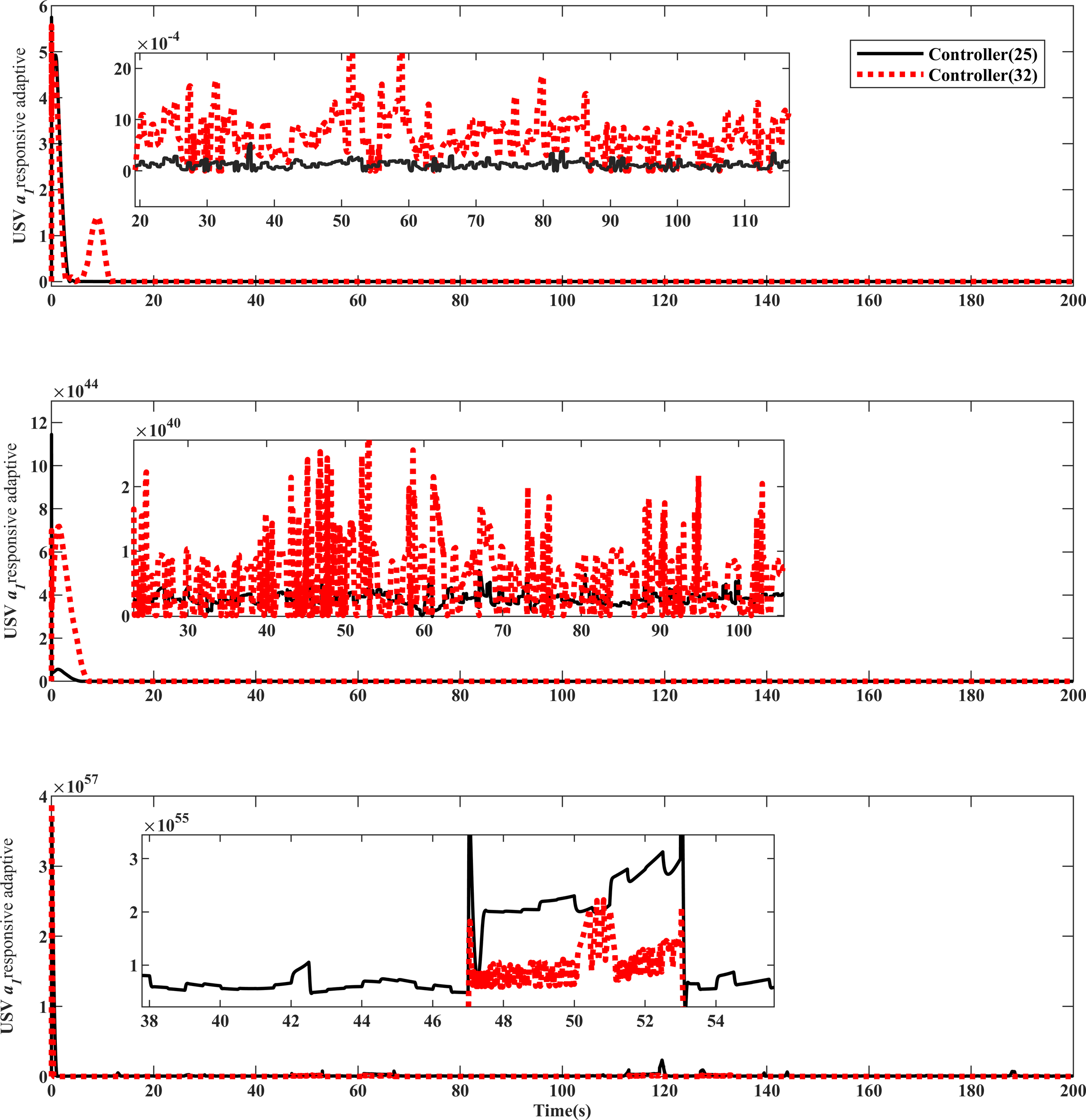 Based on the model (8) and the dynamic adjustment approach law (Equation 24), the inner loop formation controller and the adaptive law are described in (Equations 25) and (26), respectively.