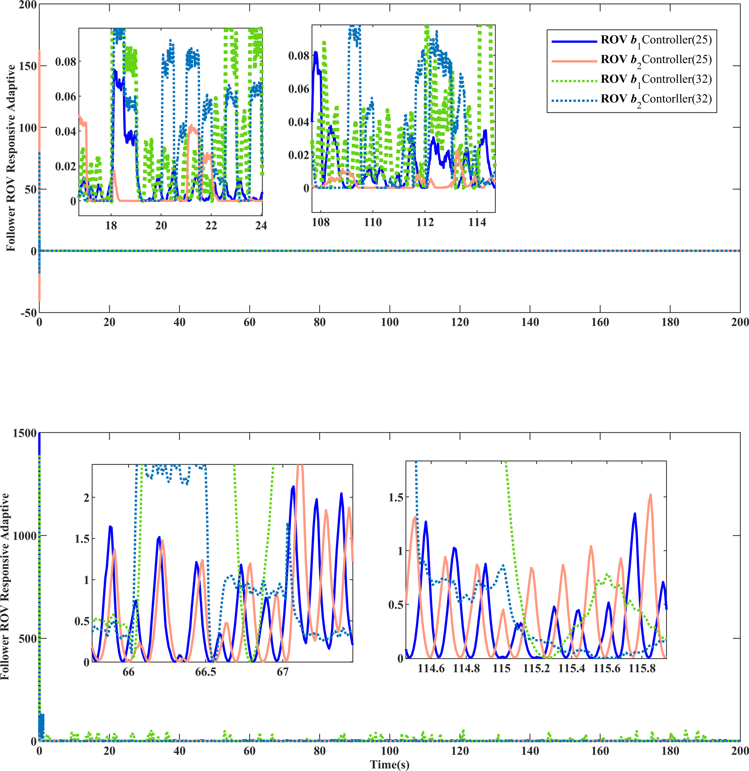 where and are the ROV auxiliary sliding mode surfaces, , , , .