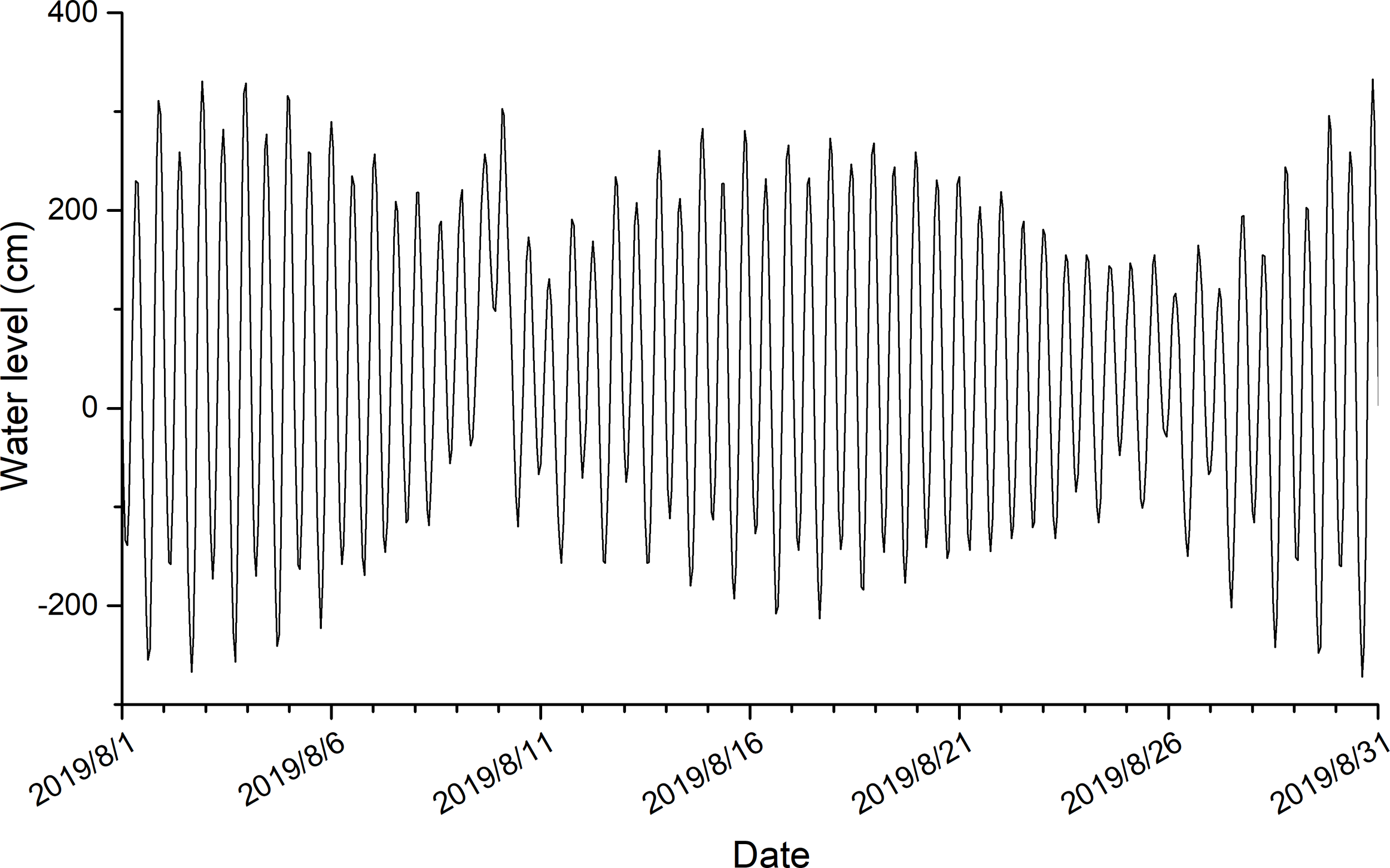 The measured water level change curve in August 2019. The water level is based on the National Vertical Datum (1985).