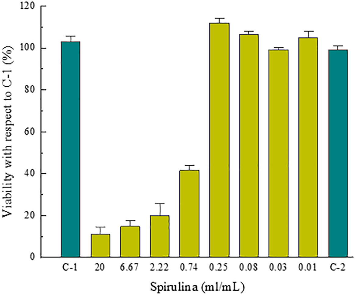 Cell viability of 3T3-L1 cells exposed of spirulina for 24 hours.