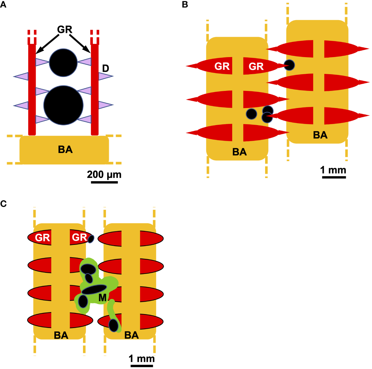 The ecological and morphological diversity of SF fishes extends to the level of the smallest filter elements: the GRs and associated protrusions (Figure 3). Comprehensive ultrastructural comparisons of the locations and morphology of GRs and their protrusions in multiple taxa are rare for SF or non-SF fishes (but see extensive morphological and functional analyses of Hamann et al., 2023, and compilation of published studies in Storm et al., 2020). The degree of detail needed for physical and computational models necessitates the use of scanning electron microscopy, histology, confocal microscopy, and/or micro-CT scanning, ideally including quantitative data on size and shape changes resulting from preservation and preparation or from limitations in resolving soft tissues (e.g., in micro-CT). Such data are lacking for almost all SF fish species (but see Paig-Tran et al., 2013; Paig-Tran and Summers, 2014; Cohen and Hernandez, 2018).