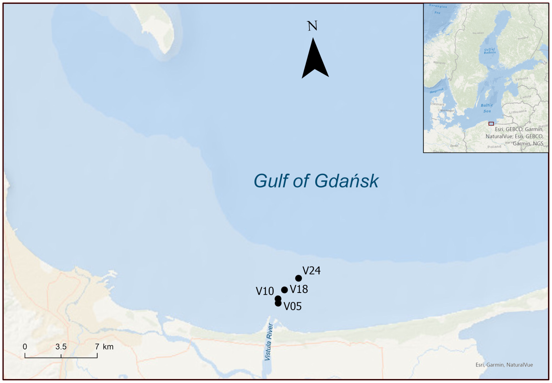 The Gulf of GdaĆsk is a coastal system strongly affected by a variable and wind-driven plume from the Vistula River. In the gulf, parameters such as salinity, N compounds and chlorophyll a concentrations change with both distance from the river mouth and depth (Kruk-DowgiaĆlo and Szaniawska, 2008; WĆodarska-Kowalczuk et al., 2016). Indeed, Bartl et al. (2018) found nitrite and nitrate concentrations significantly higher in the Vistula River plume compared to the coastal surface water, with values in the river plume up to 200 ”M recorded in spring. Nitrate concentrations in the Vistula River (<5 to >300 ”M) show positive correlation with water discharge and undergo large seasonal variations, with nearly undetectable values during summer and winter peaks, as reported by Pastuszak et al. (2012) and references therein, and for other large rivers in the same area (Vybernaite-Lubiene et al., 2018). In the Vistula basin, a seasonal thermocline is present at a depth of about 30-40 m and a halocline is observed at a depth of about 60-80 m. Bottom sediments in the Gulf of GdaĆsk display a patchy distribution, with various sands or mixed muddy-sand sediments in shallow waters and muds in the central part of the gulf (UĆcinowicz, 1997).