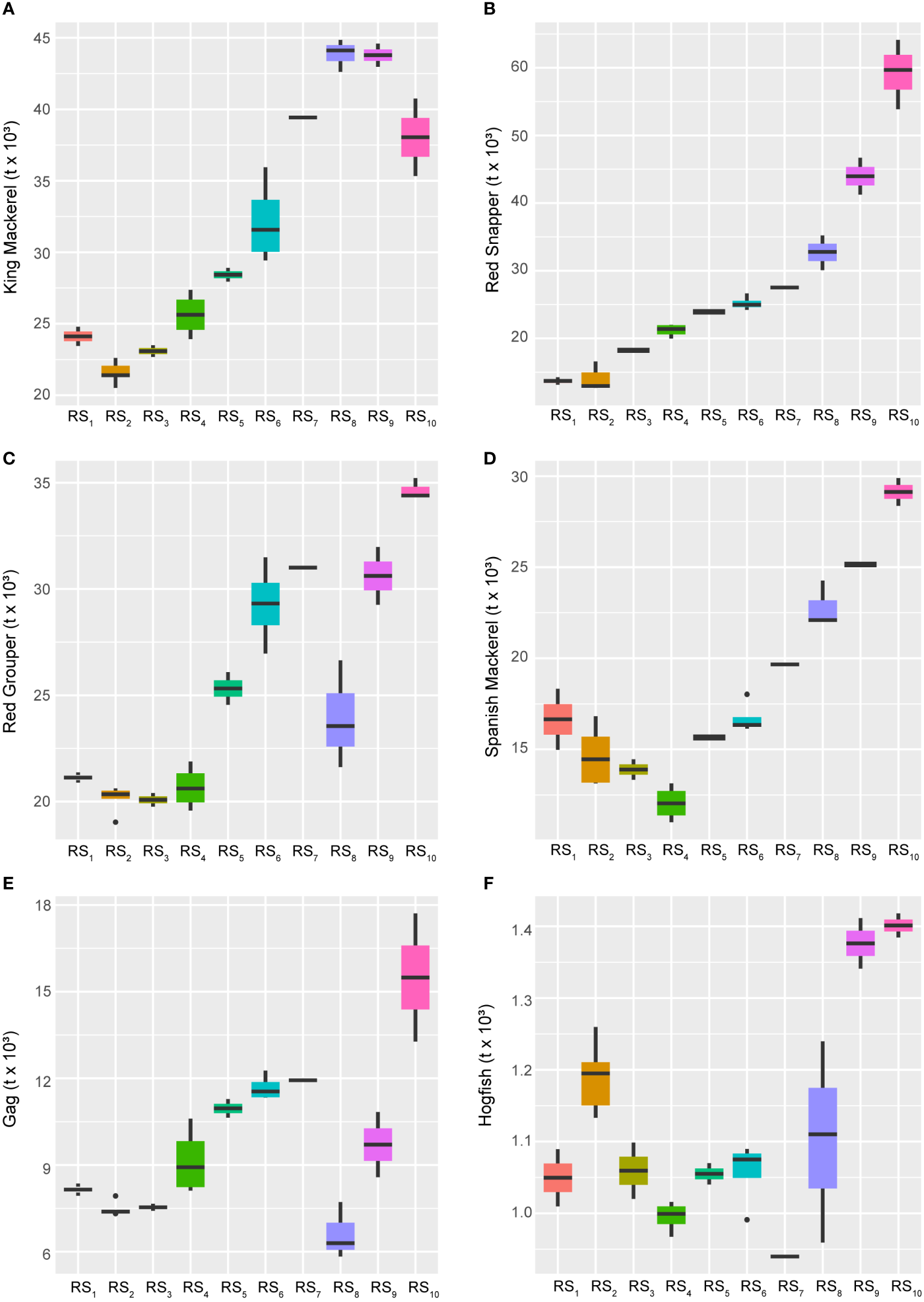| Kmackerel | King Mackerel biomass [Metric tons x 103] | 4.48 | Population state – UTL | 2013 |