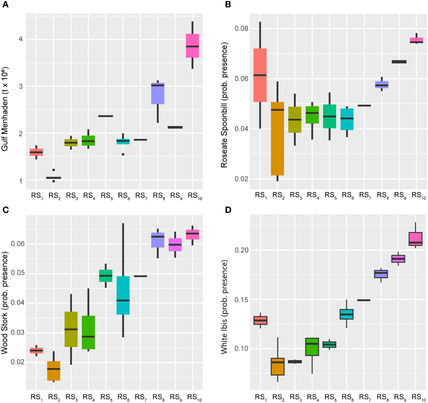 | Rspoonbill | Roseate Spoonbill probability of presence | – | Population state – UTL Prey Availability, Coastal – LTL |