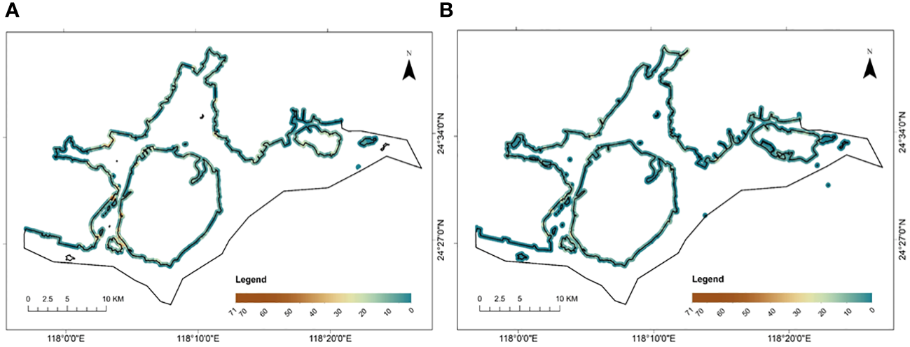 Over the past decade, Xiamen’s permanent population has increased by 1.64million. After the census in 2020, the population density of Xiamen is about 3,105 people per square kilometer, ranking fourth in the Chinese Mainland. The GDP of Xiamen has increased from 281.71 billion yuan in 2012 to 780.27 billion yuan in 2022. Besides, the proportion of Xiamen’s Gross Ocean Product to GDP has increased from15.1% in 2016 to 29.77% in 2021 (XMBS, 2013, 2023). With the rapid development of the population and economy, large numbers of forests, farmland and wetlands have been turned into developed land (Lin et al., 2013), and reclamation activities have begun to prevail. The impacts of human activities on the coastal ecosystem of Xiamen continue to increase (Lin et al., 2013; Liu et al., 2021). Therefore, reasonable land–sea spatial planning is crucial to Xiamen’s intensive and efficient use of territorial space and resources in Xiamen.