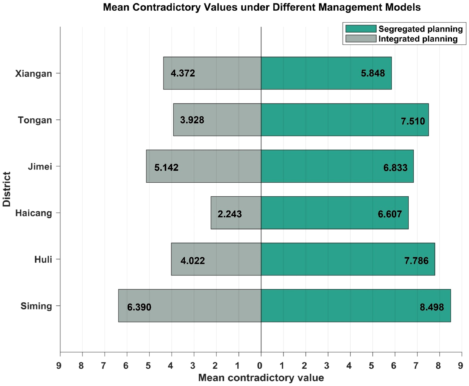 There are many forms of land–sea spatial planning integration, but the effect of different integration approaches depends on the institution’s leadership and its power, knowledge and related configurations (Pelling et al., 2008; O’Hagan et al., 2020). Based on the above discussion, this study aims to conduct a contradictory assessment of the land–sea spatial planning before and after China’s institutional reform to estimate whether this transformation is effective. Then, by introducing the Graph Model for Conflicts Resolution (GMCR), an in-depth analysis of the reasons for China’s choice of institutional arrangements for coordinating land–sea spatial planning is carried out. The innovation of this study lies in (1) a universally applicable method for quantitatively evaluating contradictions in land–sea spatial planning that was constructed and applied to Xiamen and (2) the application of the GMCR to an analysis of LSC governance options.