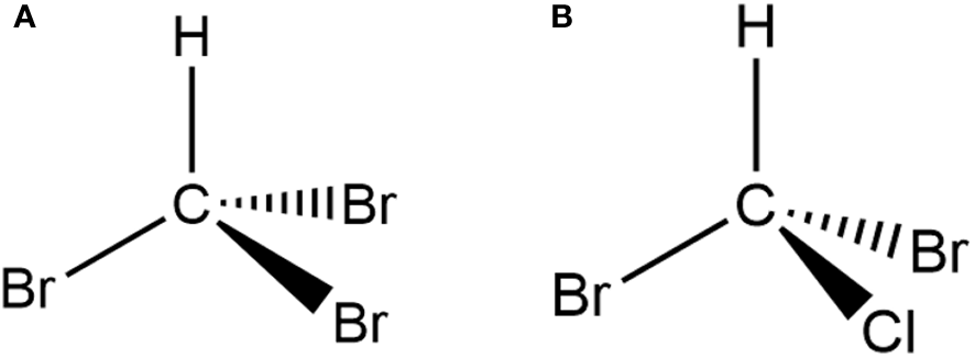 Chemical structures of (A) bromoform and (B) dibromochloromethane identified in A. taxiformis.