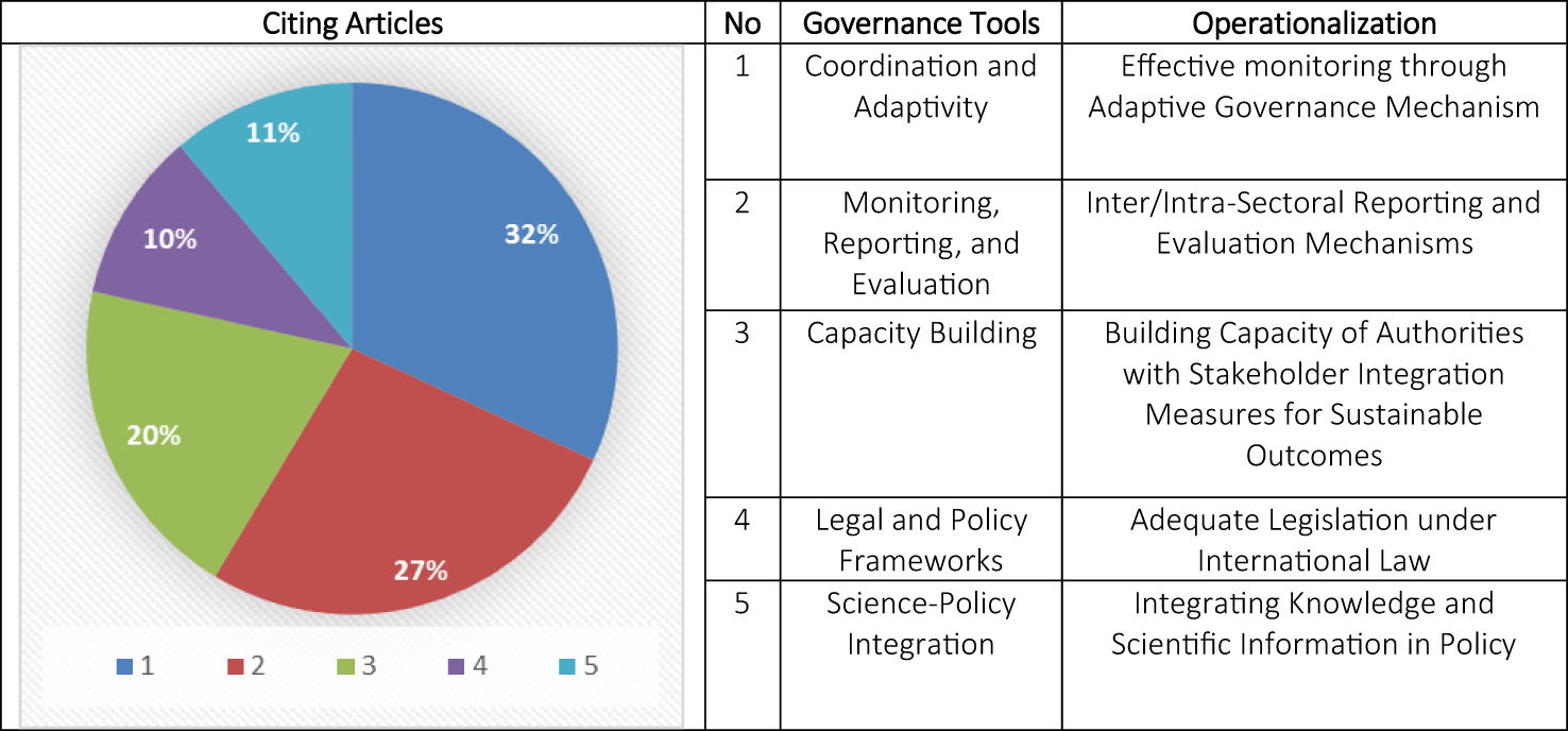 Governance Tools expanded through literature in terms of law, science, and policy integration. Various Citing Articles as mentioned in the Table 1 Interconnected SDGs in the Context of Coastal Sustainability.