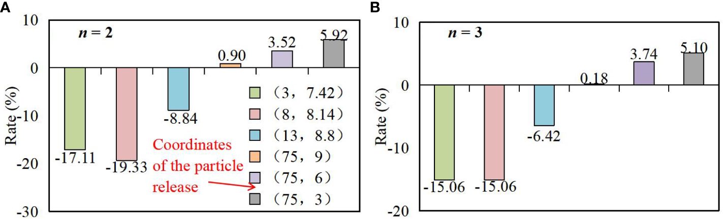 To determine the effect of preferential flow on groundwater flow, saltwater circulation, and saltwater–freshwater exchange under tidal conditions, the travel time for specified particles in the aquifer was calculated [readers may refer to Xin et al. (2010) for more details]. Three particles were released both near the inland boundary and the beach surface (refer to Figure 3, Table 4 for the specific release location).