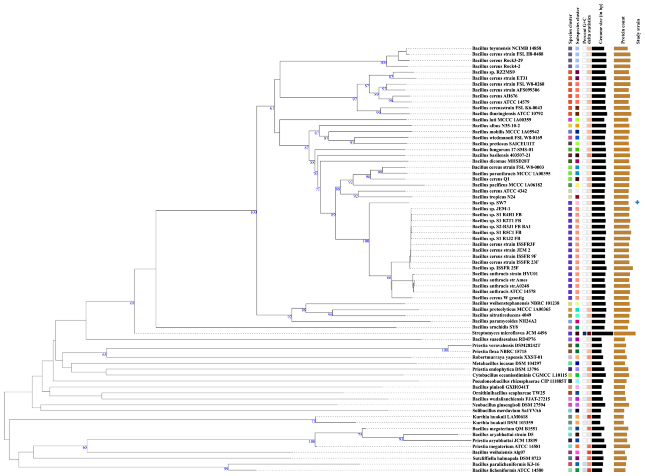 4.3 Strain SW7 phylogenetically different from B. anthracis and B. cereus and represent novel species