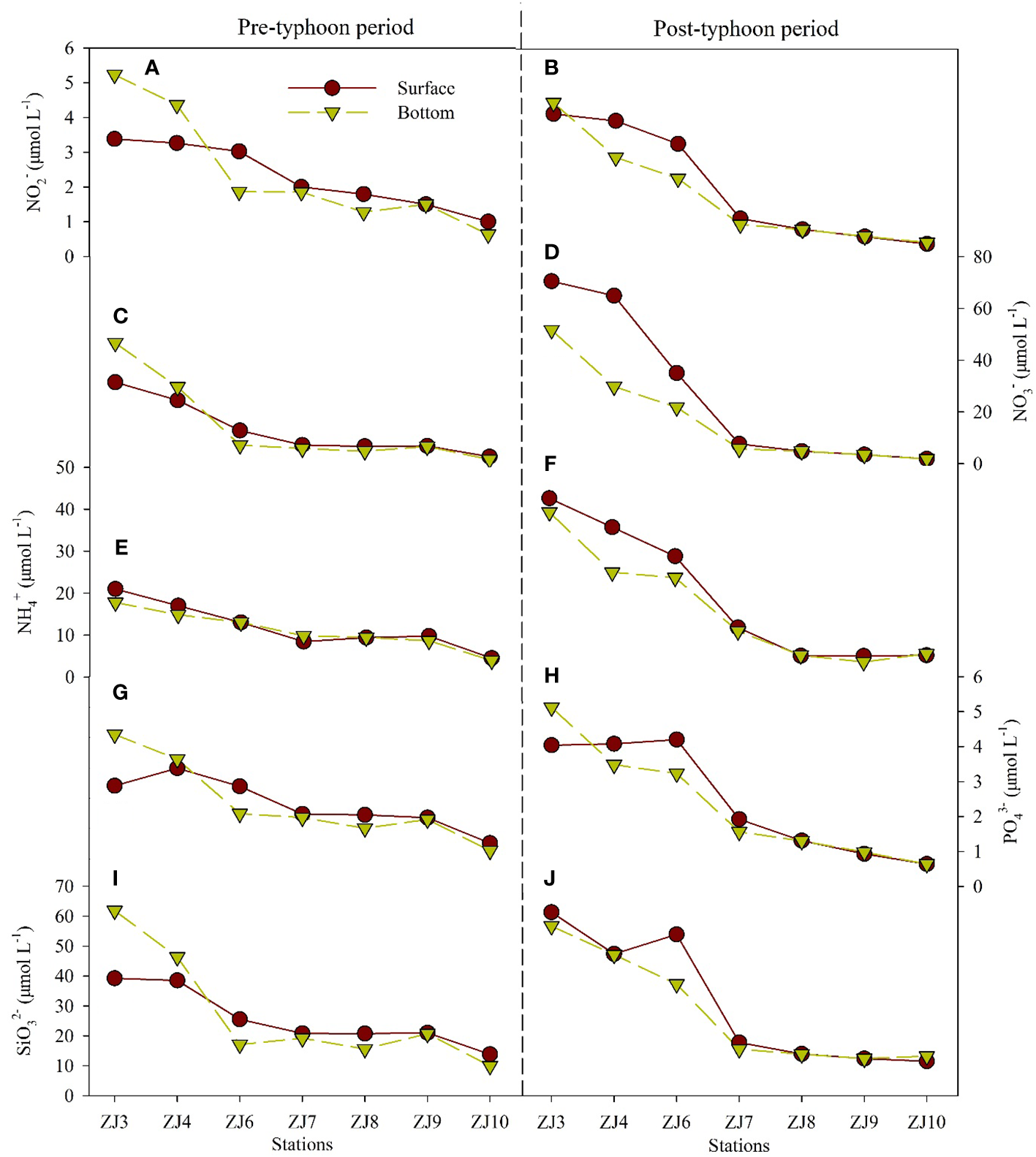 Changes in nutrient concentrations after the typhoon