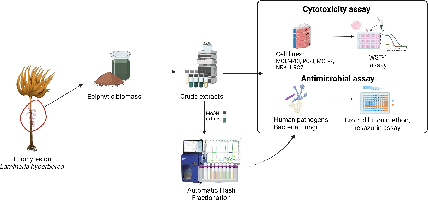 Barouti A, Herfindal L, Vagolu SK, Homberset H, Tønjum T, Kopplin G and Jordheim M (2024) Evaluation of the cytotoxic and antimicrobial potential of epiphytic biomass obtained from Laminaria hyperborea biorefinery side-streams. Front. Mar. Sci. 11:1384136. doi: 10.3389/fmars.2024.1384136