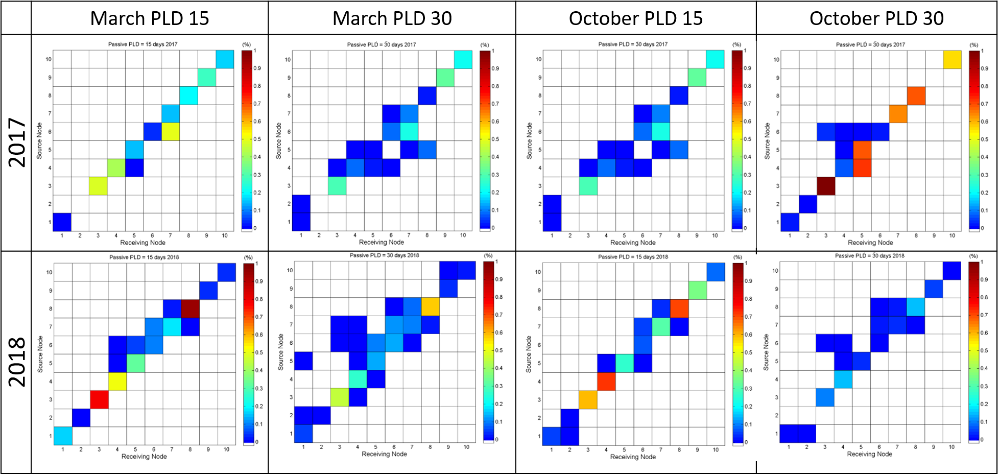 Paris C. B. Helgers J. van Sebille E. Srinivasan A. (2013). Connectivity Modeling System: A probabilistic modeling tool for the multi-scale tracking of biotic and abiotic variability in the ocean. Environ. Model. Software42, 47–54. doi: 10.1016/j.envsoft.2012.12.006