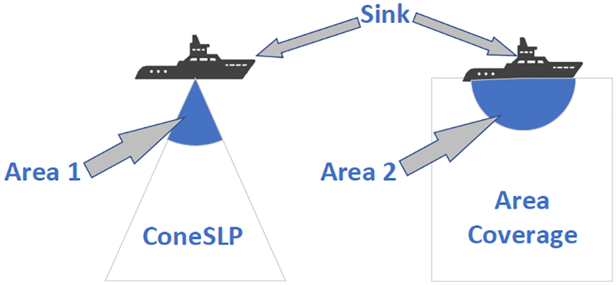 In the ConeSLP scheme, there are four types of nodes: sink, UASN, AUV, and DAQ. The AUV gathers data from DAQs and transmit the data to sink by using UASN. In order to realize ConeSLP, our research focused on the detail of the following aspects: