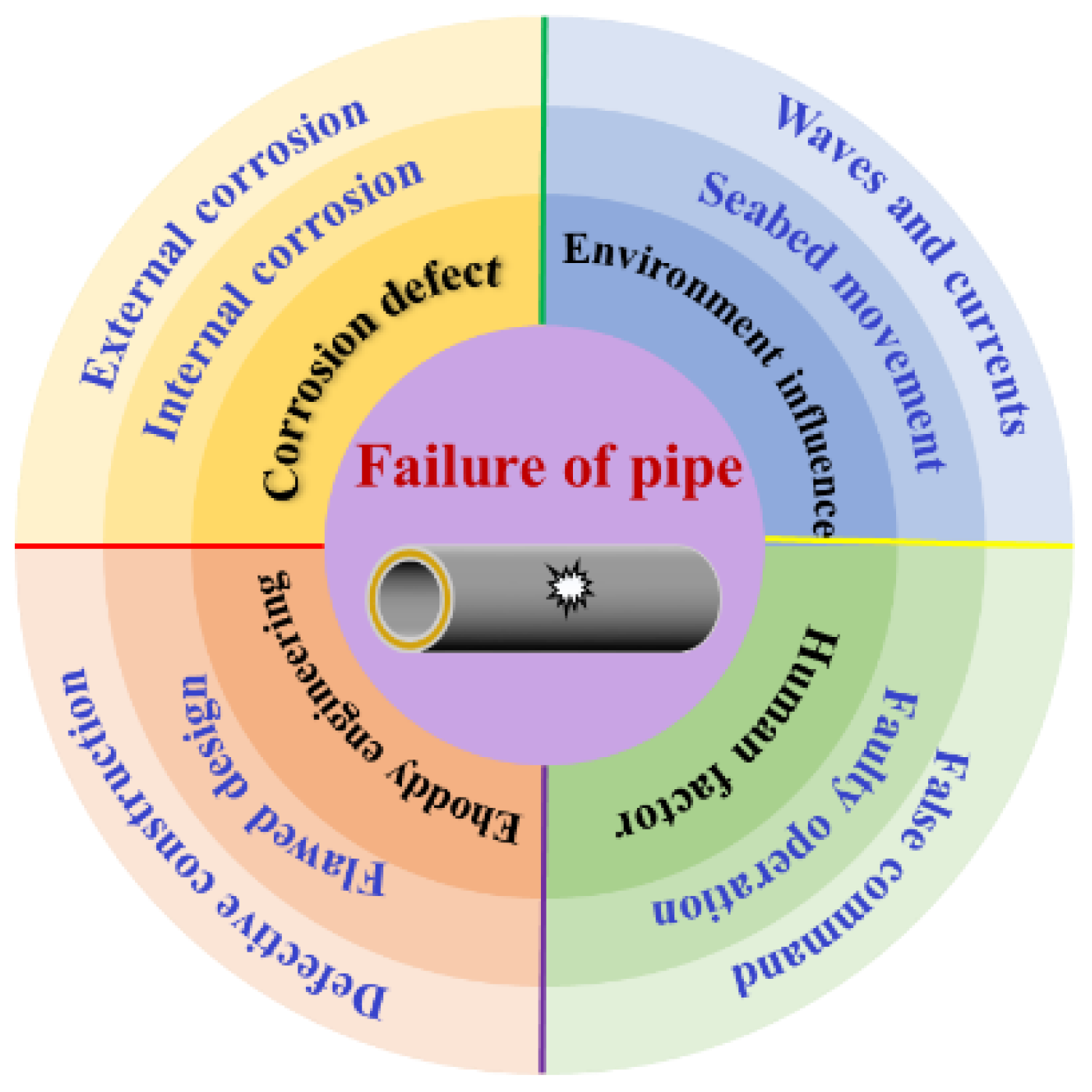 Currently, the soaring demand for fossil fuels driven by societal progress has exacerbated environmental pollution (Khan et al., 2022). Consequently, there has been a growing emphasis on the development of clean energy sources (Wang et al., 2024a). Major energy consumers, including China, have undertaken efforts to phase out polluting fossil fuels like coal by increasing the proportion of cleaner fossil energy alternatives, particularly natural gas, in their energy mixes (Rui et al., 2017 and Wang et al., 2024b). There exist vast amounts of marine resources along the coast of China (Liu and Soares, 2022 and Liu et al., 2023;), especially with a vast amount of conventional or unconventional resources such as deep-sea natural gas or combustible ice hidden under the seabed. Subsea gas pipelines play a pivotal role in the exploitation of offshore oil and gas resources. However, pipeline leaks, perforations, and ruptures, which can lead to natural gas leakage, are potential risks influenced by several factors, including human intervention, corrosion, environmental stressors, and engineering quality (Najjar, 2013) (Figure 1).