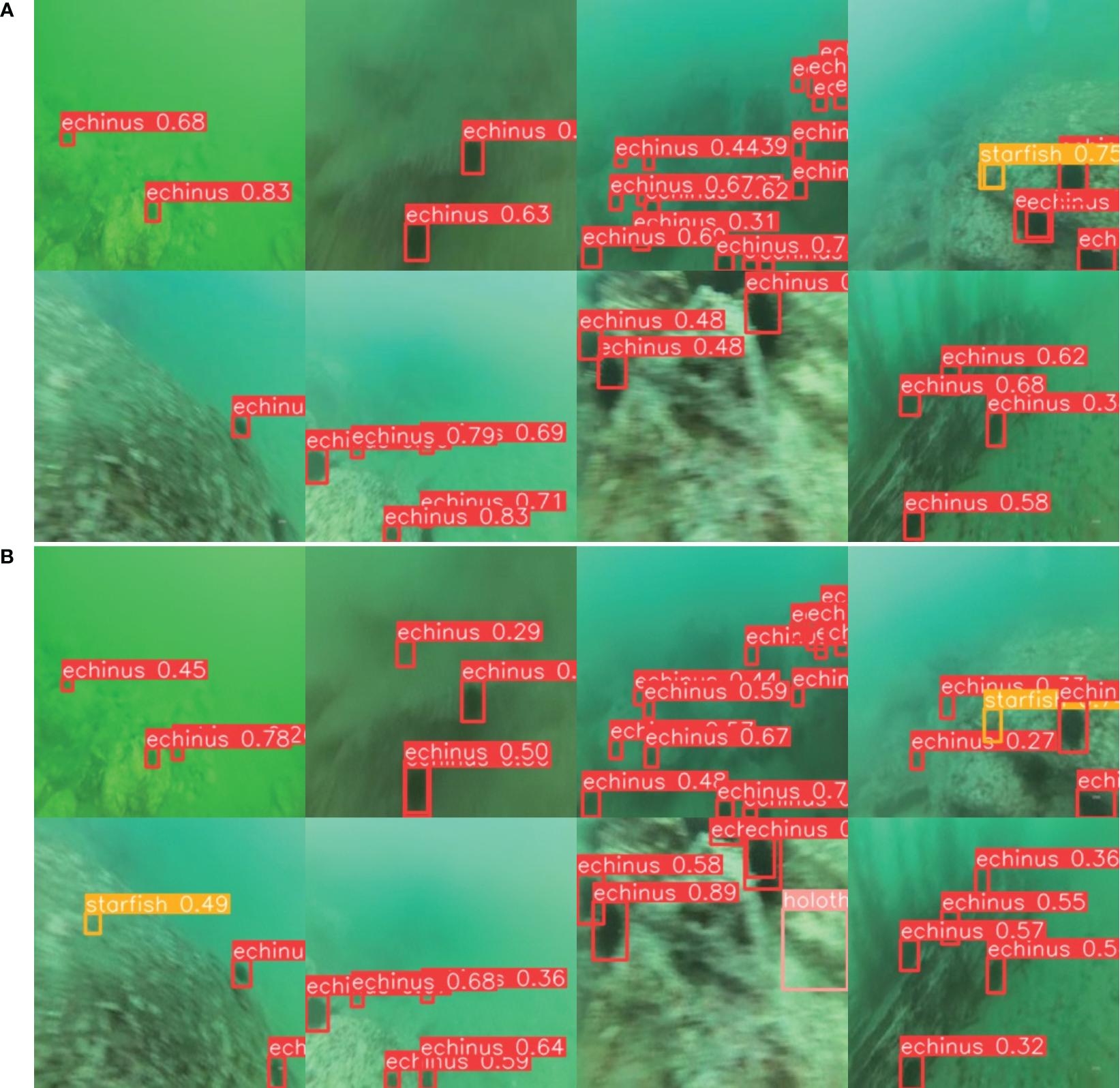 Ranolo E. Gorro K. Ilano A. Pineda H. Sintos C. Gorro A. J. (2023). “Underwater and coastal seaweeds detection for fluorescence seaweed photos and videos using yolov3 and yolov5,” in 2023 2nd International Conference for Innovation in Technology (INOCON). (Bangalore, India: IEEE), 1–5. doi: 10.1109/INOCON57975.2023.10101342