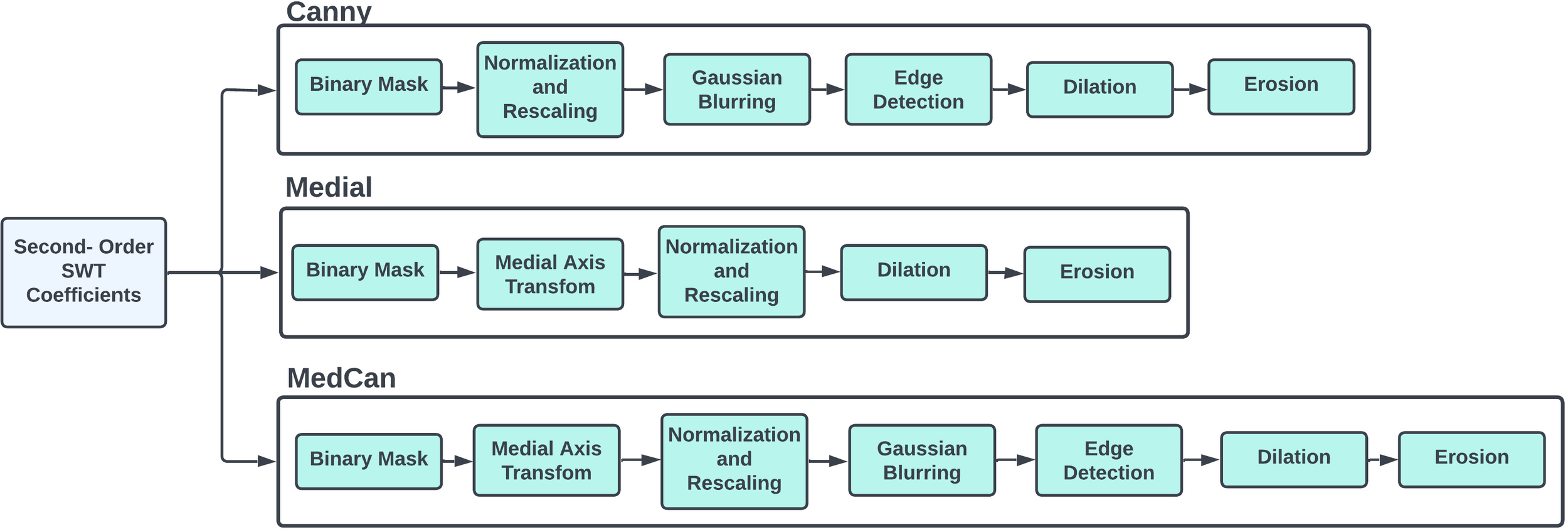 Feature post-processing methods and their intermediary stages.