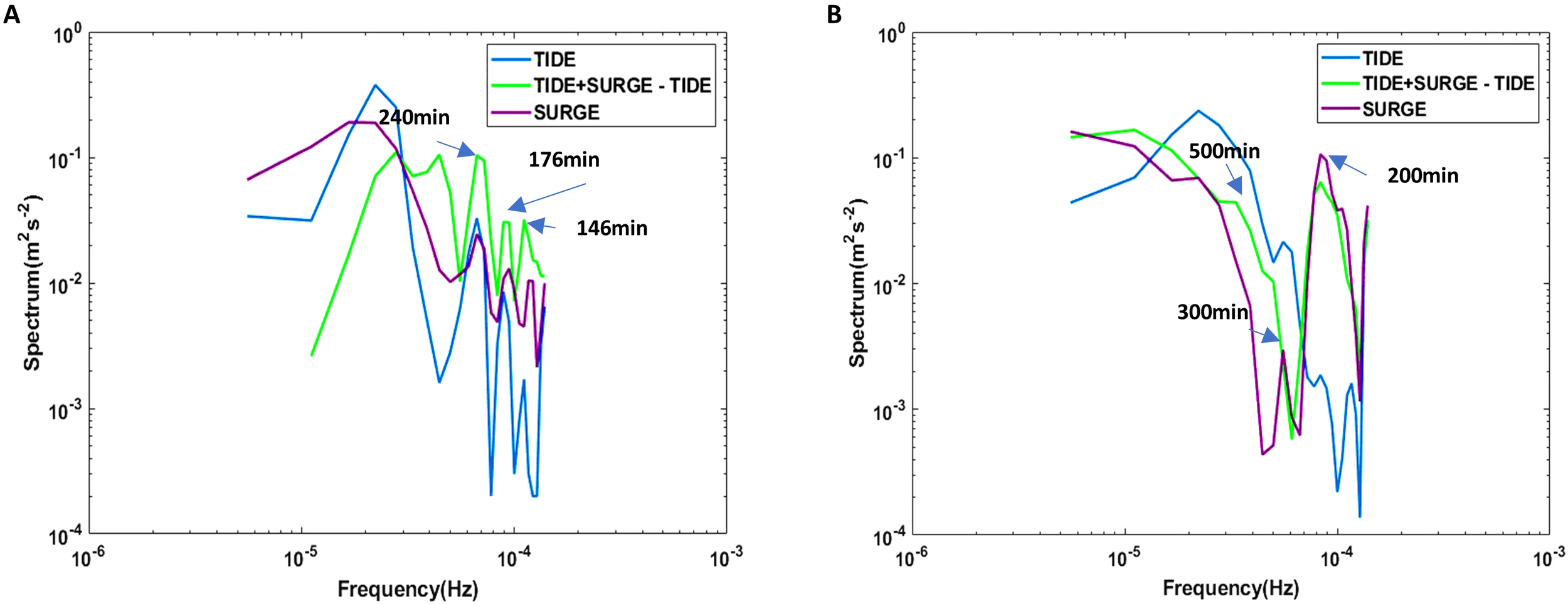 3) TIDE+SURGE: Simulates the actual water level variations, encompassing atmospheric forcing and the effects of astronomical tides. The water level variation corresponds to the storm tide, labeled as .