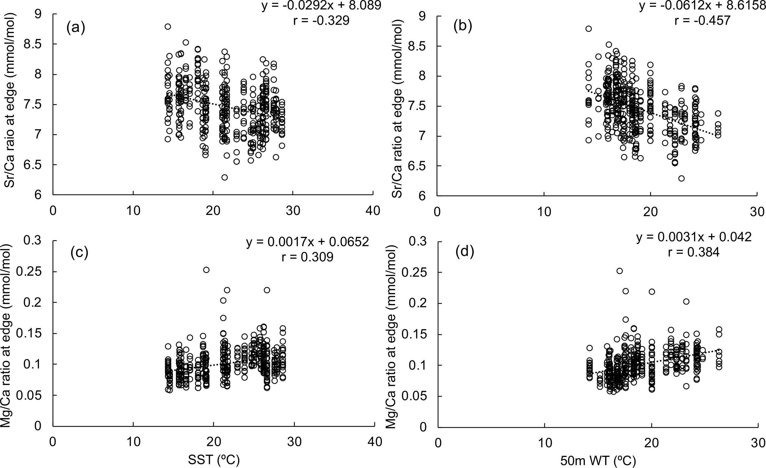 | Sr/Ca (mmol/mol) | r = 0.008, | P = 0.869 | r = -0.032, | P = 0.507 |