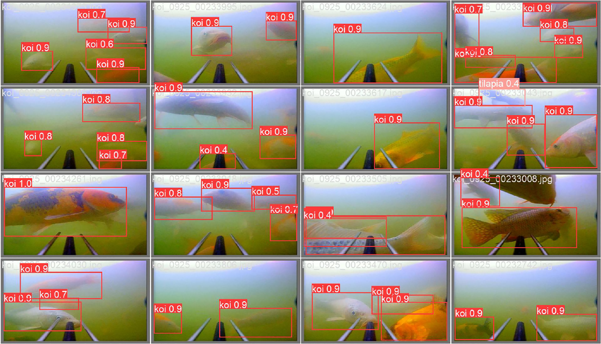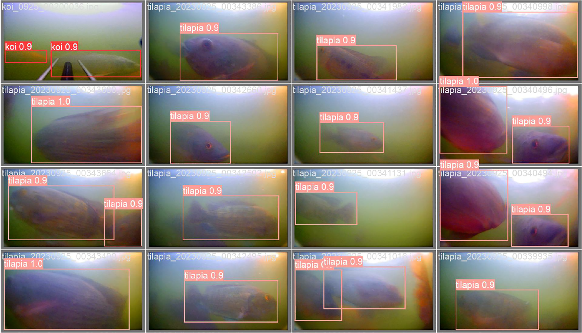 Overview of the freshwater fish dataset. There are photos of tilapia and koi fish with different angles and brightness.