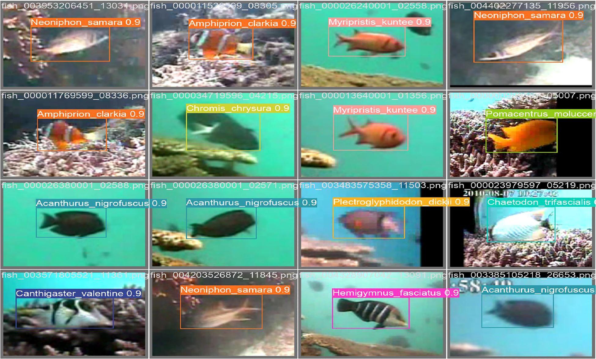 | Fish4Knowledge | 27,370 | More than 27,370 | 23 | Captured from open sea | 320 × 320 and 640 × 640 |