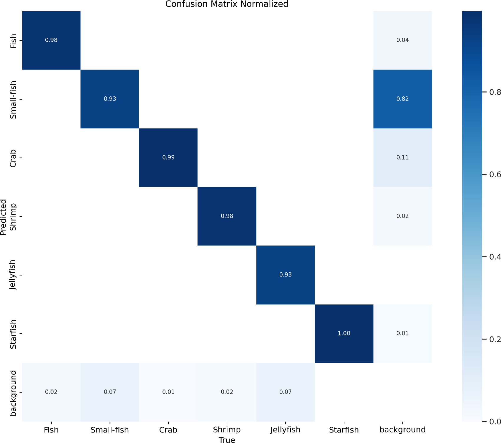 In recent years, extensive research has focused on employing deep learning methodologies for fish detection and classification. DeepFish (Qin et al., 2016), for instance, initially extracts background features through sparse and low-rank matrix factorization, subsequently employing deep learning architectures to discern the key characteristics of frontal fish images. Another study by Zhou et al. (2022) integrates a self-attention mechanism within a tower-like structure, preceding the main CNN with a generative adversarial network (GAN) to enrich data variability. Researchers in the study of Knausgård et al. (2022) utilize a squeeze-and-excitation ResNet (SE-ResNet) augmented with a compressed and encouraged (CE) loss function for individual fish classification per image, and they also implement transfer learning strategies to mitigate the constraints imposed by limited training samples for various fish categories. The work presented by Ben Tamou et al. (2021) comprises a dual faster R-CNN configuration where the models share either a common region proposal network or a unified classifier. AdvFish (Zhang et al., 2022b) introduces a min–max bilevel adversarial optimization framework, enhancing model robustness by training on adversarially perturbed images using an adaptive perturbation methodology. Lastly, Mathur et al. (2020) merges features derived from layers 154 and 157 of ResNet-50 to elevate the model’s overall performance.
