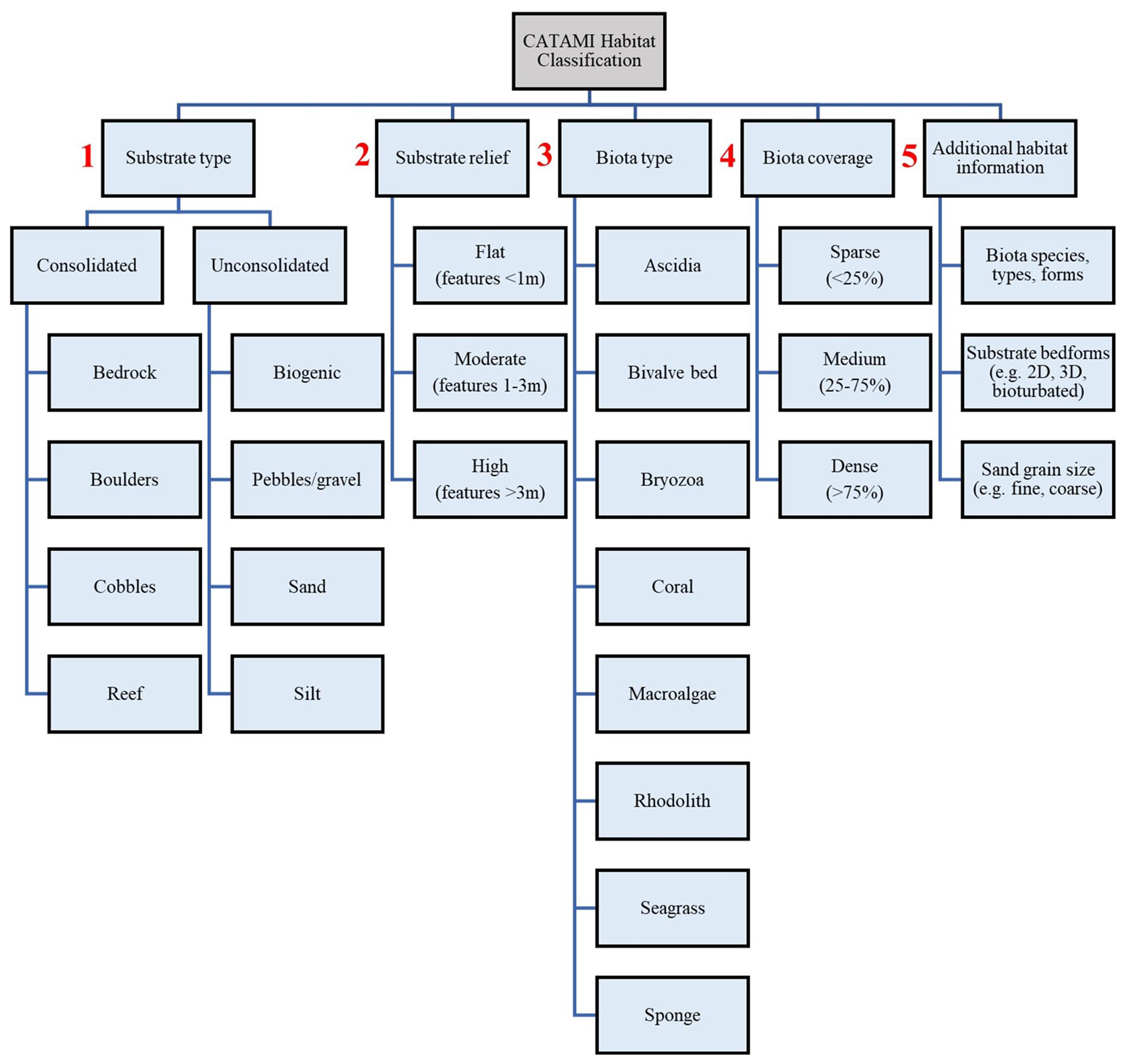 Althaus F. Hill N. Edwards L. Ferrari R. Case M. Colquhoun J. et al . (2013). CATAMI Classification Scheme for scoring marine biota and substrata in underwater imagery—A pictorial guide to the Collaborative and Annotation Tools for Analysis of Marine Imagery and Video (CATAMI) classification scheme. Version 1.3.