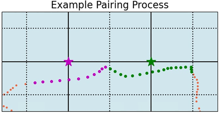 The results presented in the rest of this study are based on the nearest neighbor method, which is illustrated in Figure 2. At a given hour, the reanalysis data at specific grid points (marked as stars in Figure 2) are paired with observations from a saildrone. This pairing is based on the saildrone’s hourly averaged location (indicated by dots), centered on that hour, and positioned within the grid boxes (the dotted lines in Figure 2) represented by the grid points (the intersections of solid lines). When there is more than one saildrone in the same grid box at the same time, data from each saildrone is paired with the same gridded data and they are treated as independent samples in the reanalysis-saildrone comparison.