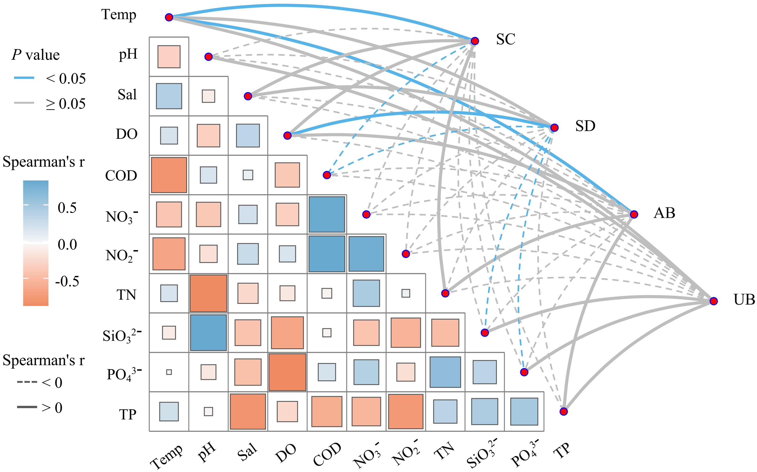 Correlation analysis between seagrass community characteristics and environmental factors.