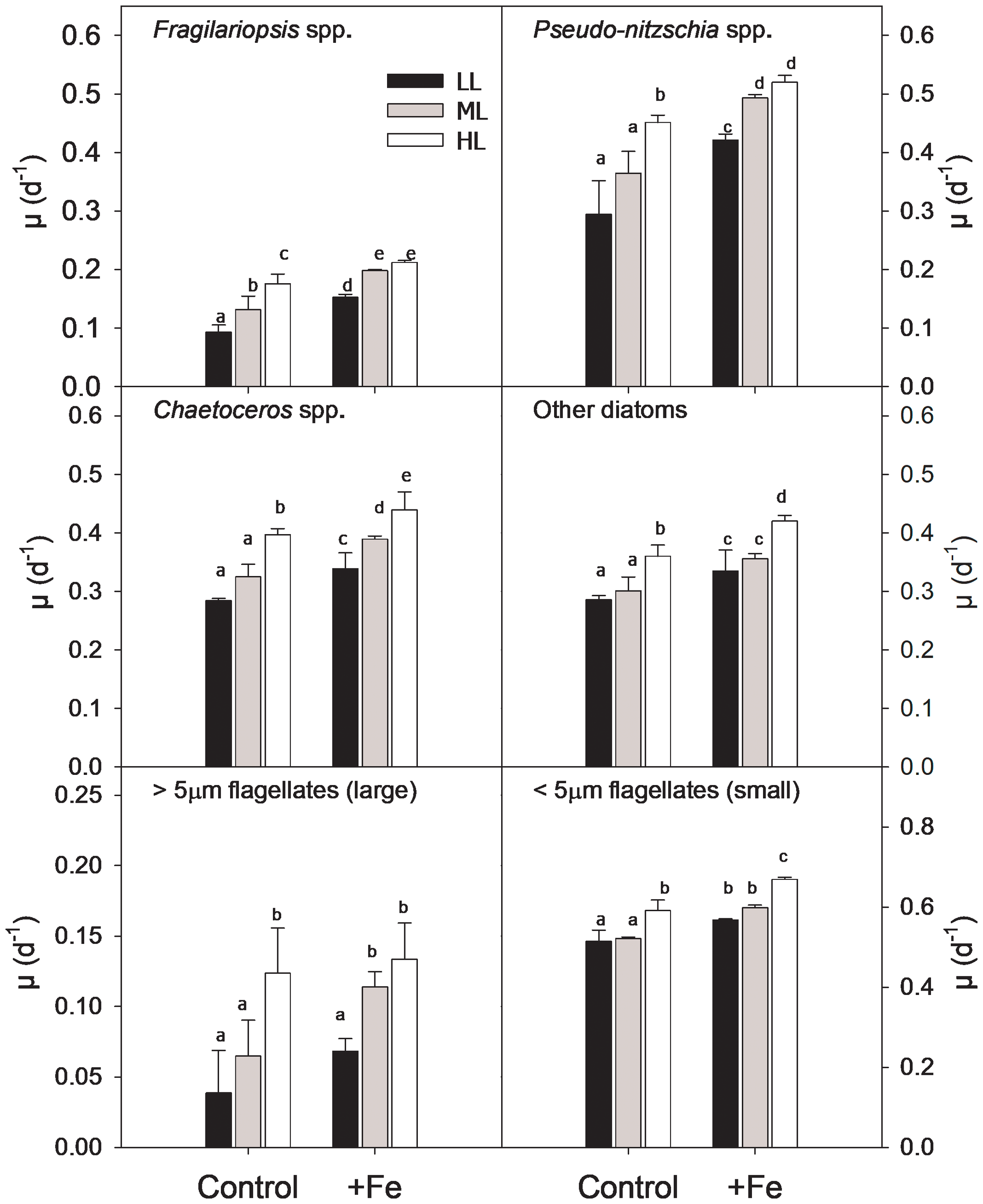 | Bio 1 | +Fe | HL | 0.34 ± 0.05ab | 2.5 ± 0.15b | 0.28 ± 0.01a | 586 ± 17ac | 184 ± 19ac | 118 ± 15a | 1.56 ± 0.06a |