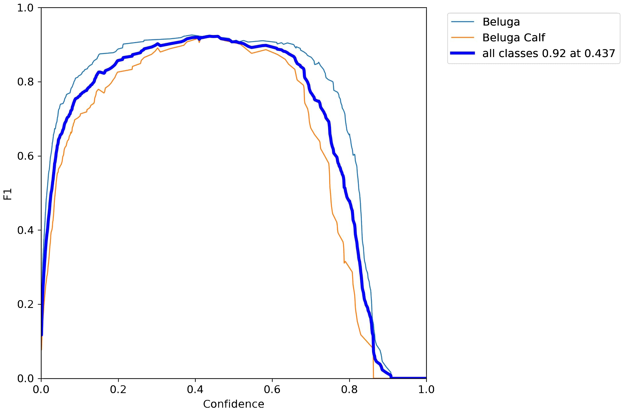 F1-curve for beluga whale detection.