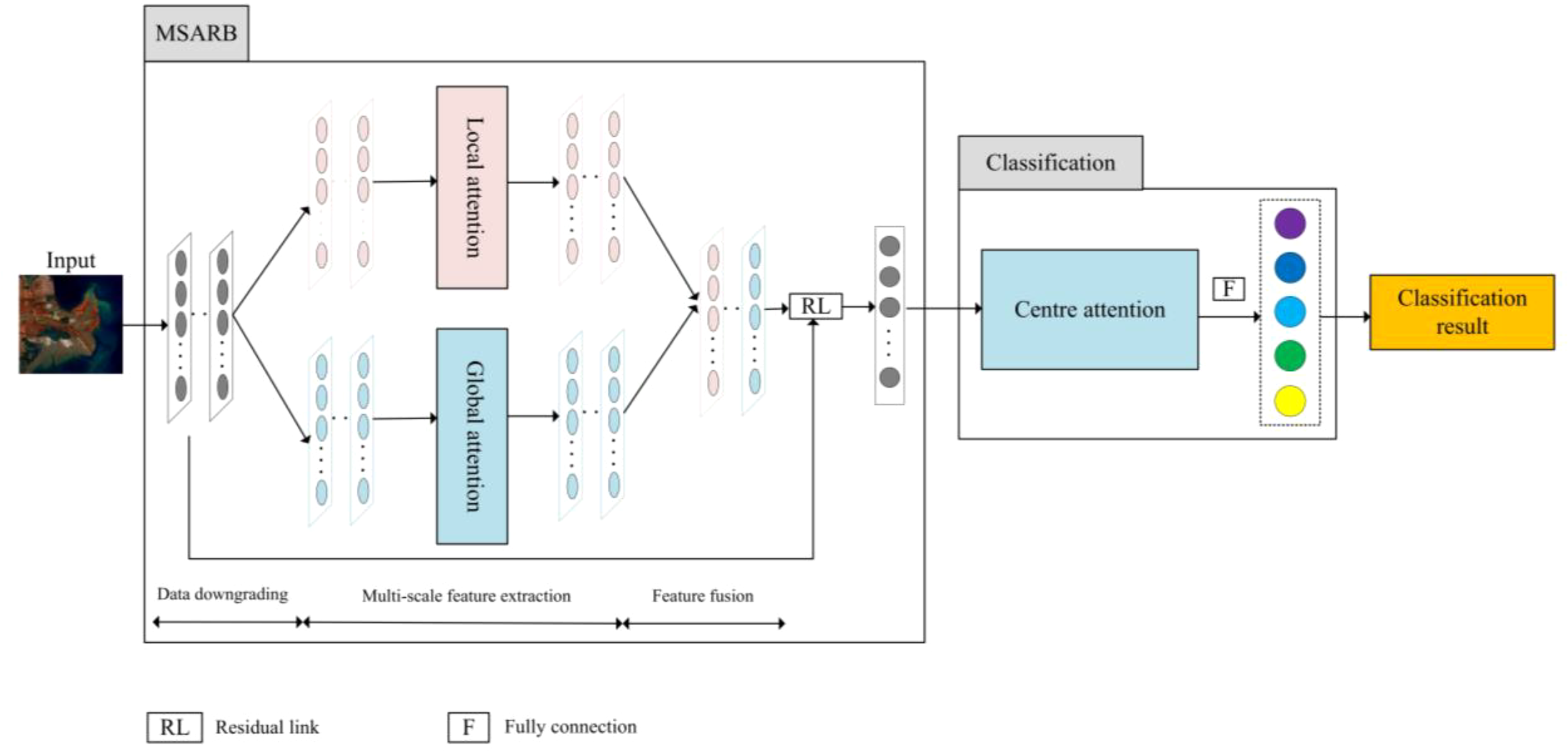 The network proposed in this study is shown in Figure 1, including Multi-scale attention residual block (MSARB), classification module, reconstruction module, and customized loss function.