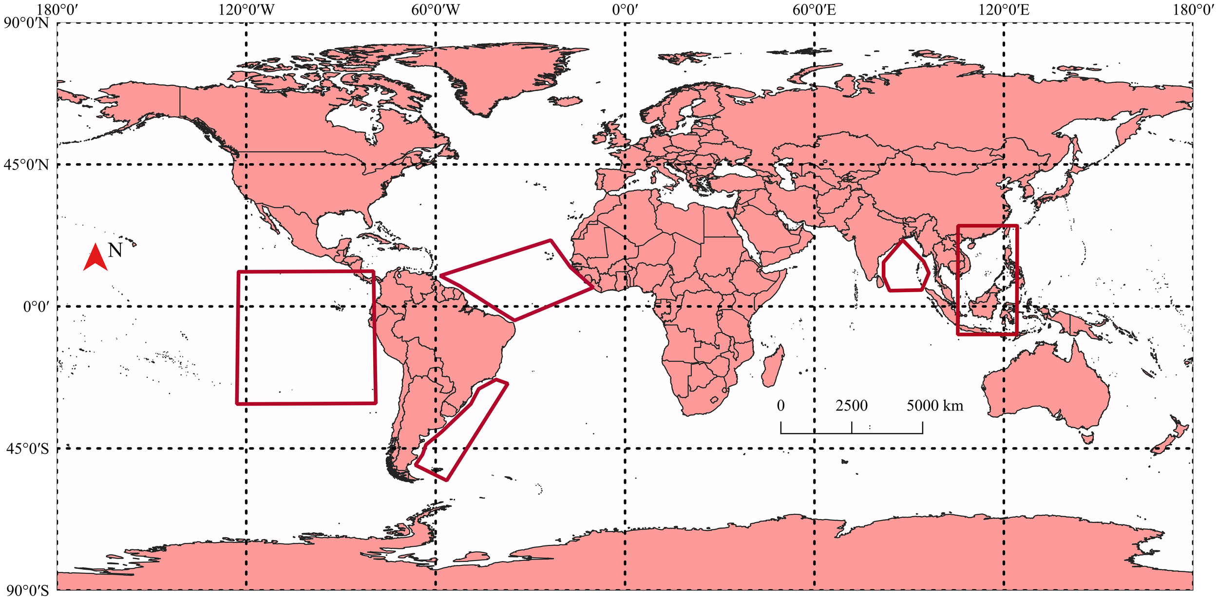 The four synthetic aperture radar (SAR) image regions that made up the dataset.