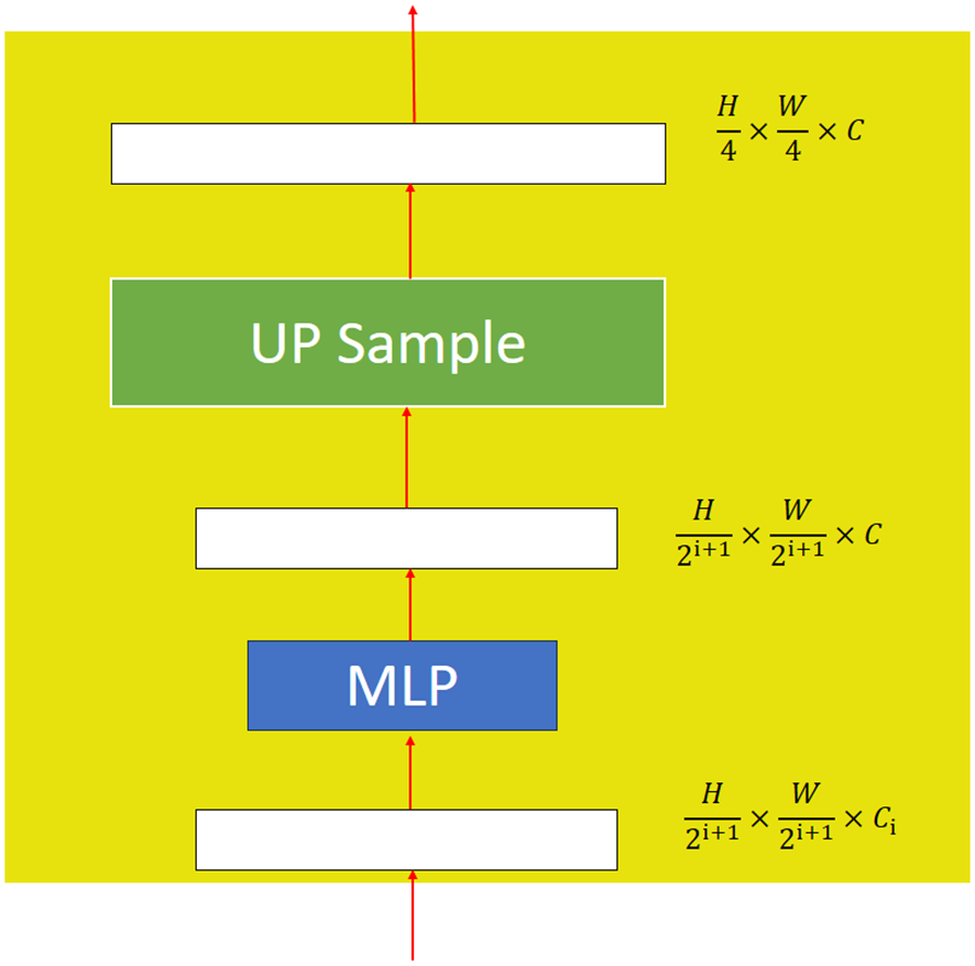 Xie et al. (2021) proposed a decoder architecture that consists of lightweight all-MLPs, as shown in Figure 5. Firstly, the multilevel features from the encoder use the MLP layer to unify the dimensions. Secondly, the feature maps are up-sampled to a uniform size and then merged. Thirdly, an MLP layer is used to fuse the combined features in order to obtain the feature F. Finally, another MLP layer is used to predict the segmentation mask M. A detailed structure of the MLP layer is shown in Figure 5.