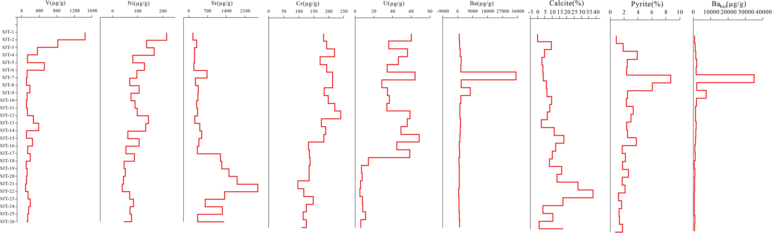 The major and trace element concentration of black shale samples was respectively determined by X-ray fluorescence spectrometer (XRF, Primus II) and inductively coupled plasma mass spectrometer (ICP-MS, Agilent 7700e) at the Wuhan Sample Solution Analytical Technology Co., Ltd.