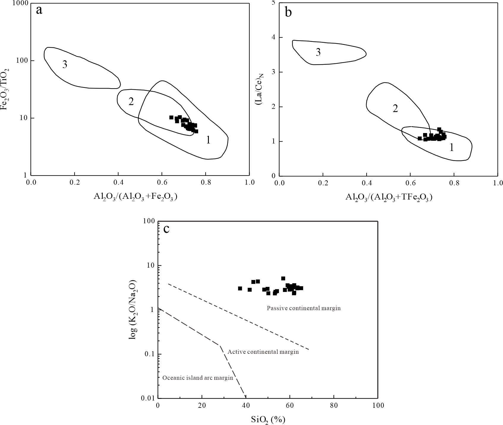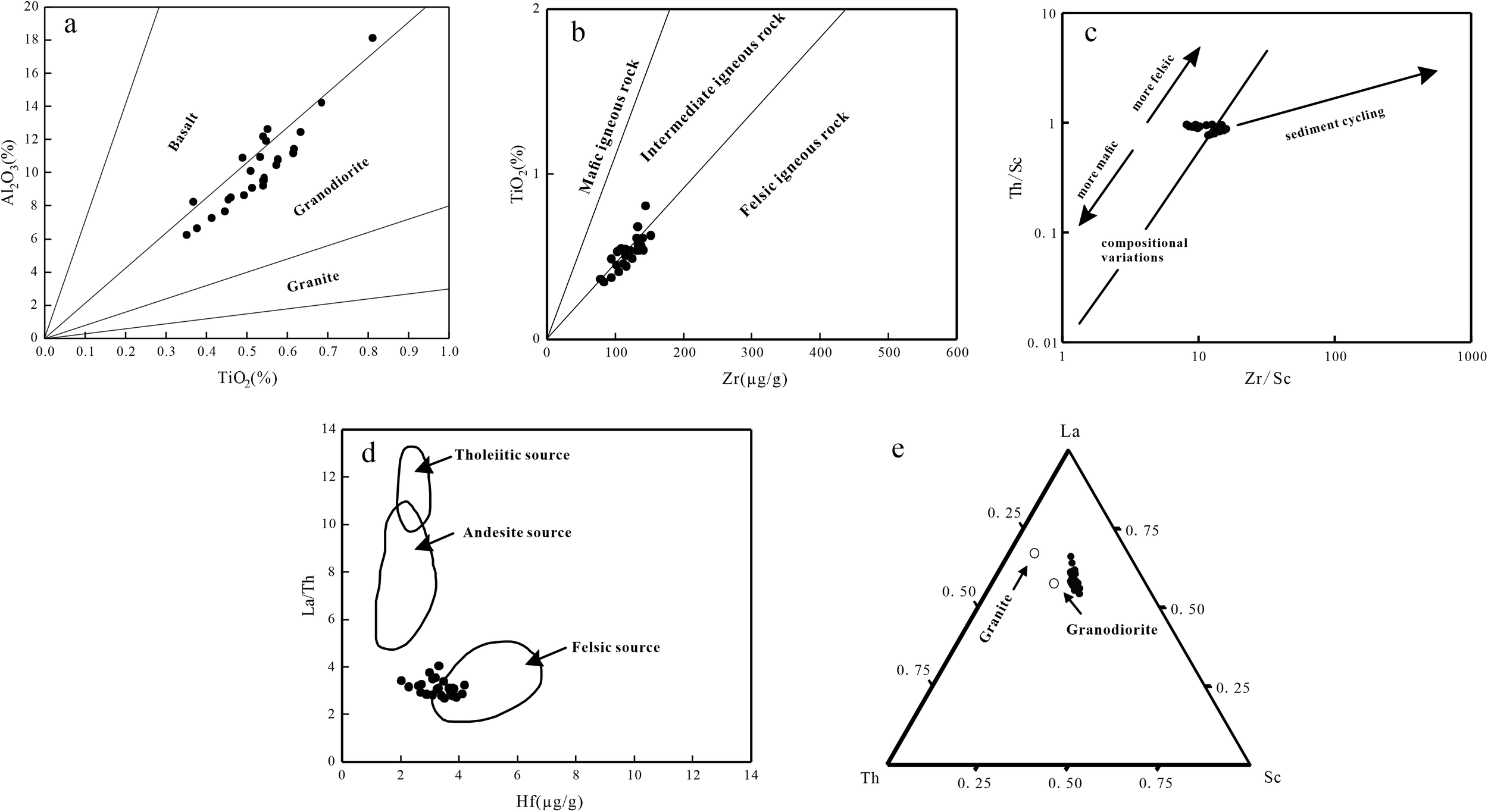| Samples | SiO2 | TiO2 | Al2O3 | Fe2O3 | MnO | MgO | CaO | Na2O | K2O | P2O5 | Al2O3/TiO2 |