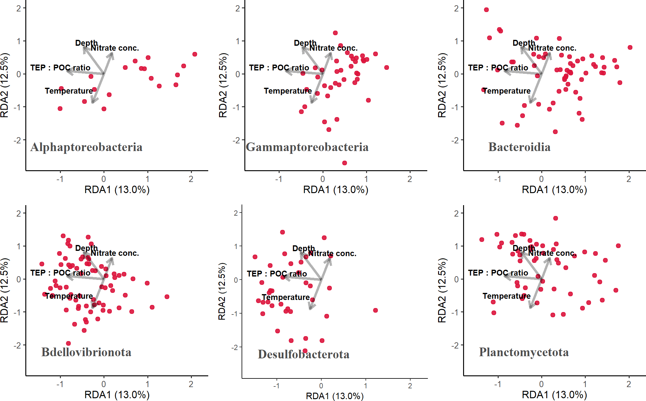 particle dynamics, bacterial community composition, niche differentiation, ocean carbon export, transparent exopolymer particles, differential abundance analysis