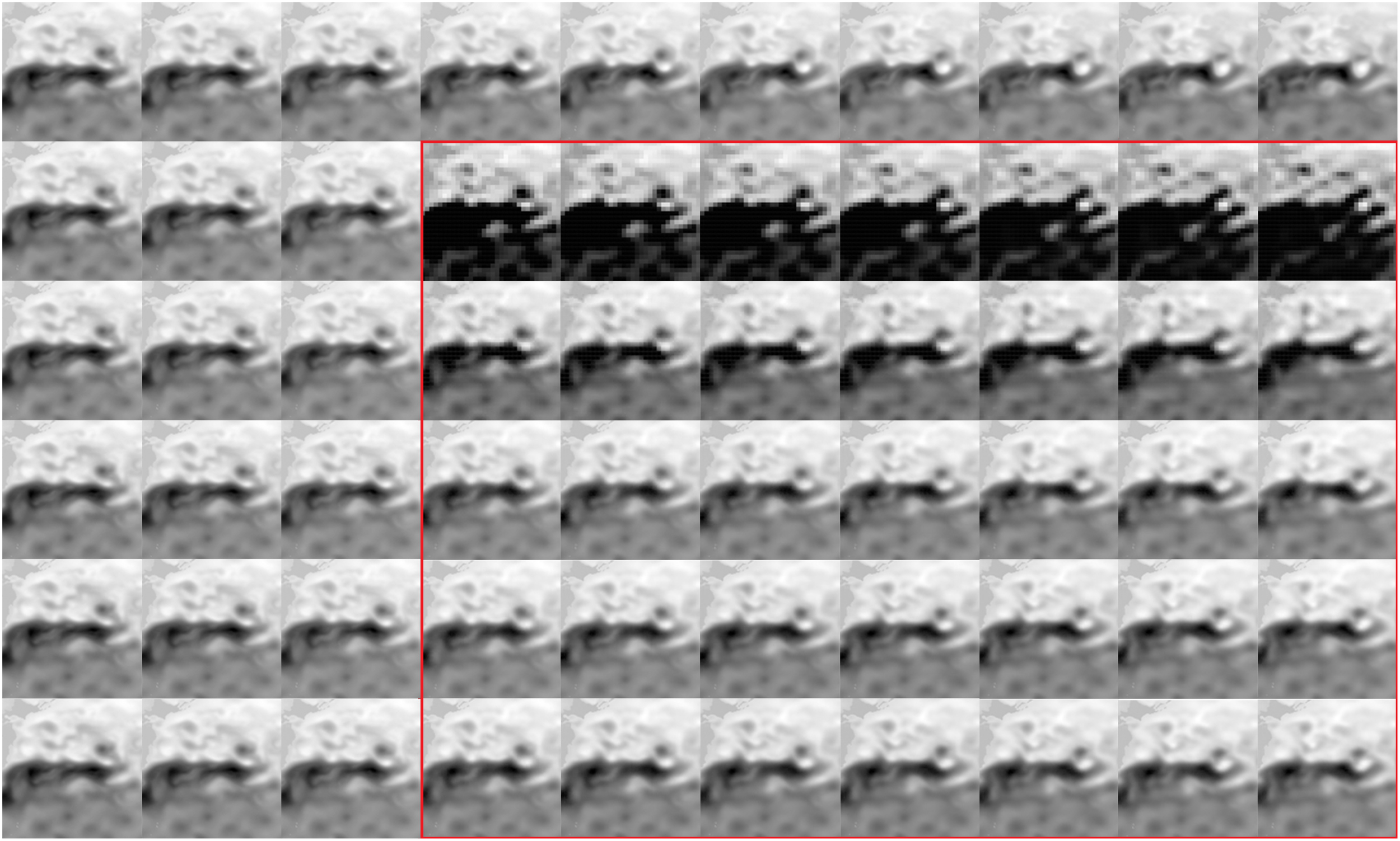 For the identification of a mesoscale eddy, since all the current data-driven mesoscale eddy identification algorithms are based on feature identification of grid point data, the selection of the region and the determination of the data resolution play crucial roles, and too large or too small a resolution will have a great impact on the eddy identification results. Thus, in this paper, to ensure that the steps of the data extraction, model training, metric evaluation, and testing of the generalisation capability are characterised by continuity and referability, we fixed the study area as 25–45°N, 150–170°E. Since the resolution of the original altimetry data is 1/4°×1/4°, i.e., the dimension of the data in this part of the region is 80×80, to retain the details of the original data and facilitate the construction of the model, we interpolate all of the input–output data to 128×128 using the Akima (Akima, 1970) interpolation algorithm.